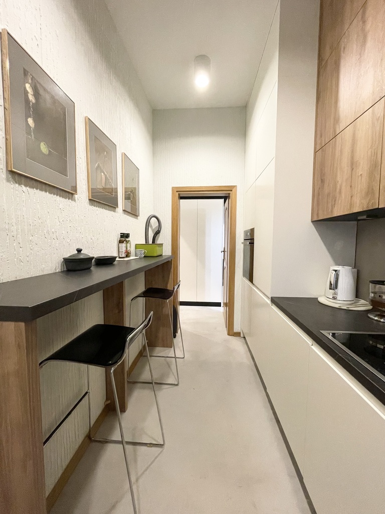W mieszkaniu przeprowadzono generalny remont. Wymieniono instalacje wodno-kanalizacyjne, elektryczne, wylano posadzki cementowo-żywiczne. Dużym atutem nieruchomości jest bardzo starannie i estetycznie wykonana zabudowa meblowa znajdująca się w przedpokoju, tworząca dużo miejsca na przechowywanie.