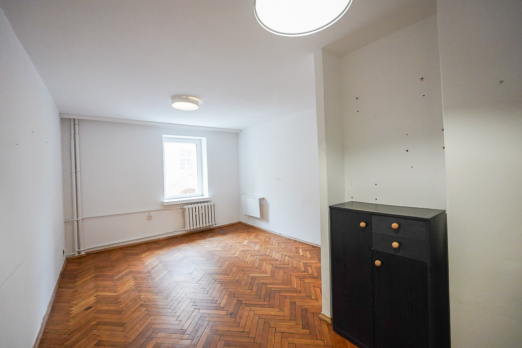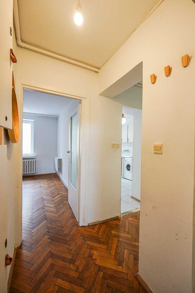 Okolice Jasnych Błoni, blisko Park Kasprowicza, 5 minut spacerkiem, blisko Urząd Miasta, komunikacja miejska. Kawalerka o powierzchni 33,31 m2 z widną oddzielną kuchnią i łazienką i przedpokojem. Możliwość utworzenia pokoju z aneksem kuchennym i sypialni. I piętro niskiego budynku z cegły z lat 60 -tych. Spółdzielcze własnościowe prawo do lokalu. W podwórzu możliwość parkowania bez konkretnego miejsca postojowego. Pokój ok. 18 m2 na podłodze parkiety. Oddzielnie kuchnia z oknem ok. 9 m2 umeblowana i wyposażona w sprzęt AGD: kuchenka gazowa z piekarnikiem (do wymiany), pralka, lodówka z zamrażarką, zlewozmywak, glazura i terakota. Łazienka po remoncie wykonanym po wymianie pionów w glazurze i terakocie w niej kabina prysznicowa, umywalka, WC razem, powierzchnia ok. 1,7 m2. W przedpokoju o powierzchni ok. 3 m2 szafy w zabudowie. Możliwość urządzenia pokoju z aneksem kuchennym, a w dotychczasowej kuchni urządzenia sypialni. Okna PCV. Widok z okien na ul. Niedziałkowskiego od strony południowej. Drzwi wejściowe antywłamaniowe. Koszt utrzymania -czynsz do zarządcy ok. 600 zł. W czynszu do zarządcy jest zaliczka na ogrzewanie miejskie, ciepłą wodę miejską i zimną wodę. Dodatkowo prąd, gaz do kuchenki i ewentualnie internet. Dostępny dostawca UPC. Do mieszkania przynależy niewielka piwnica. Wolne od zaraz.
