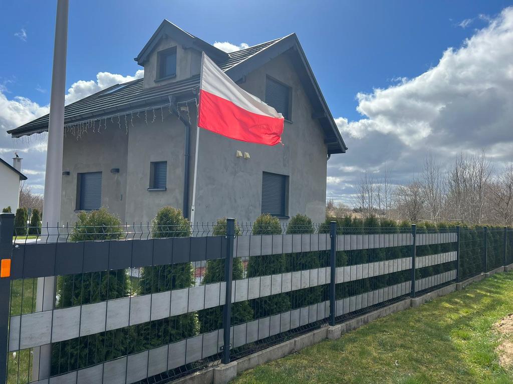Okna 3-szybowe z zewnętrznymi roletami. Teren działki ogrodzony z bramą otwieraną na pilota.
