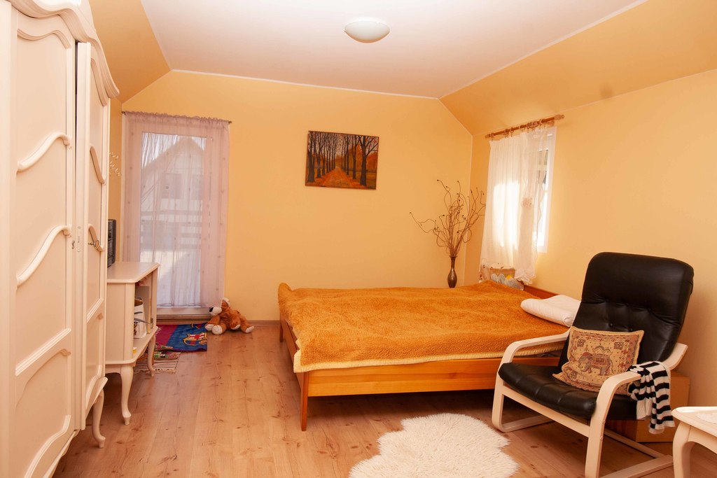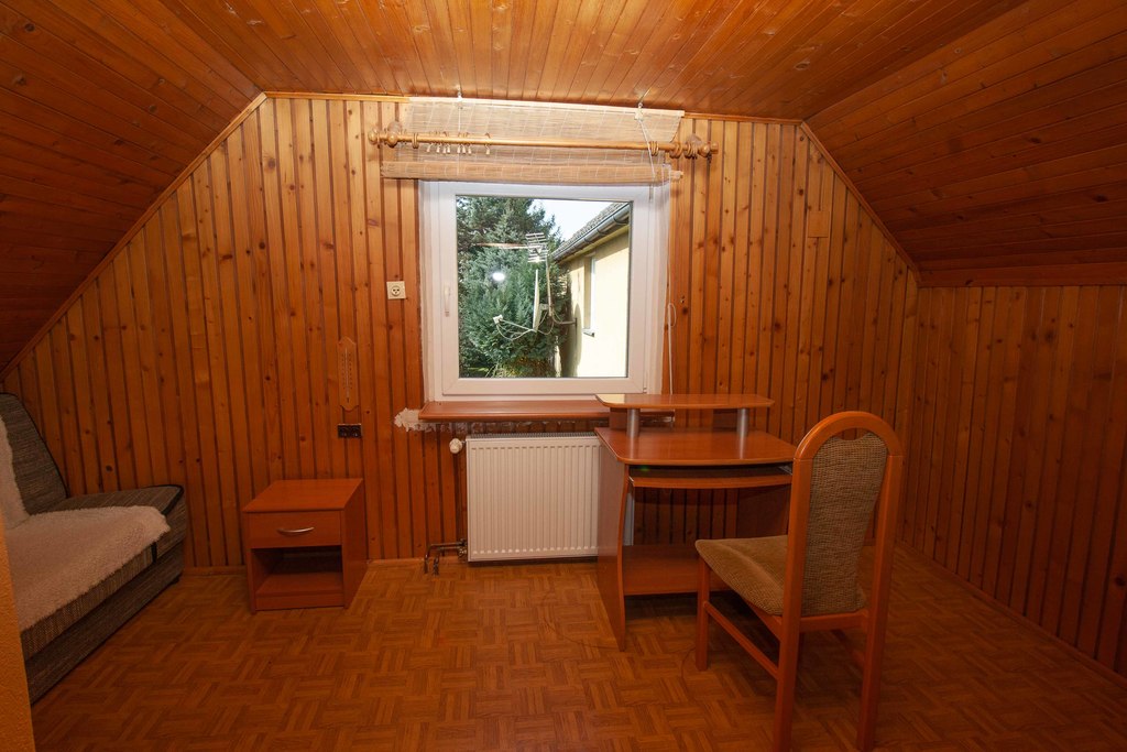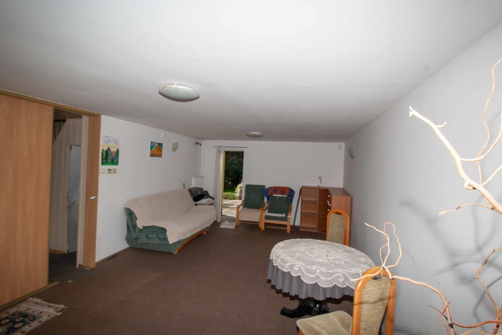 - przybudówka ( ogrzewanie elektryczne podłogowe), składa się z na parterze: pokoju dziennego, kuchni, łazienki a na piętrze: sypialnia z wyjściem na taras.