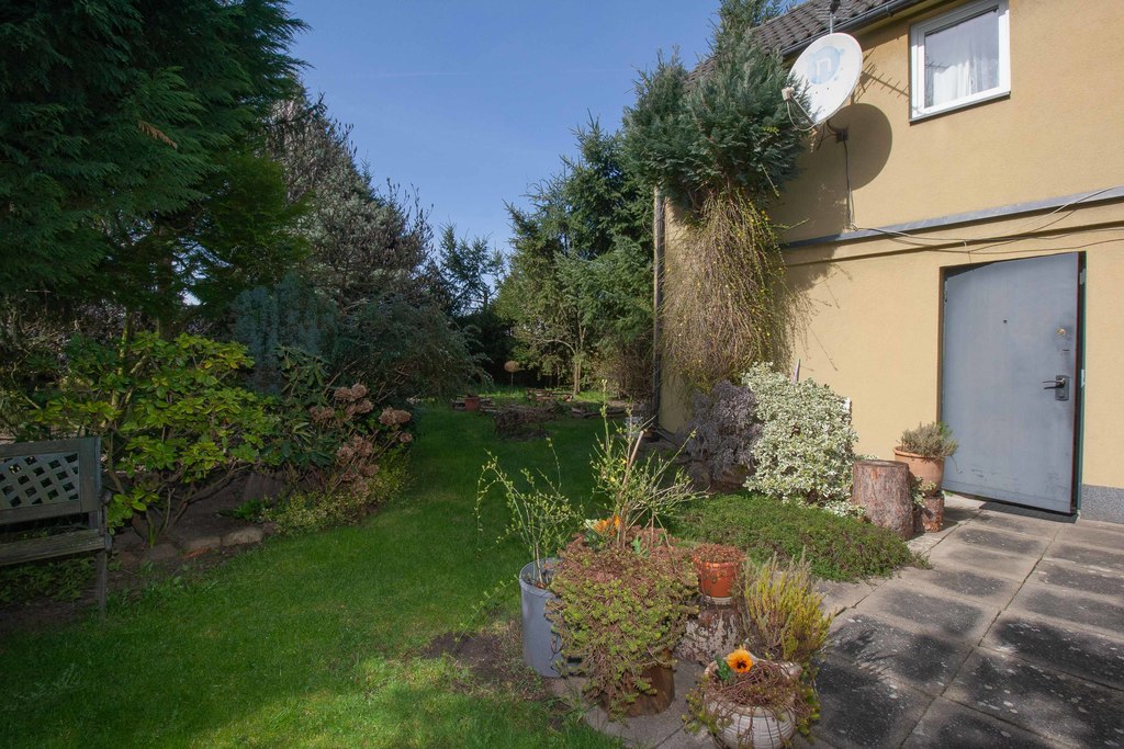 Działka na której posadowione są domy to jeden z większych atutów nieruchomości. Ogród z całoroczną zielenią jest piękny i klimatyczny. Znajduje się w nim dużo nasadzeń, które tworzą z tego miejsca enklawę ciszy i spokoju.