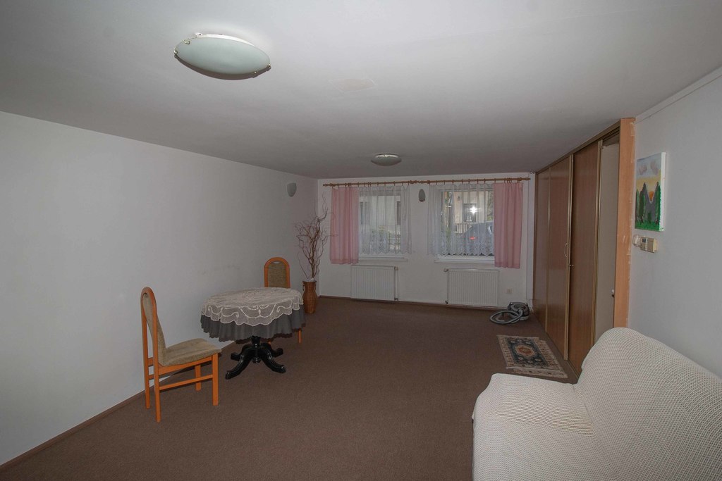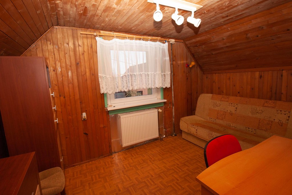 - dom 3 pokojowy, parter to pokój dzienny kuchnia i łazienka, na poddaszu dwa oddzielne pokoje, zmieniono na nową instalacje grzewczą gazową,