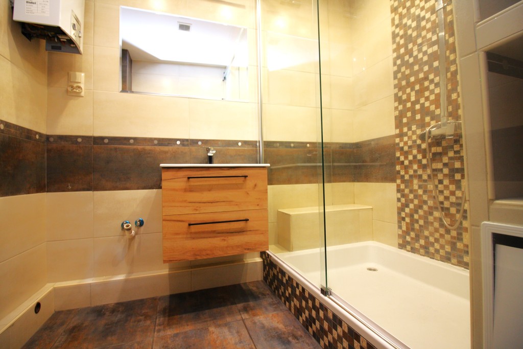 - łazienka z dużą kabiną prysznicową