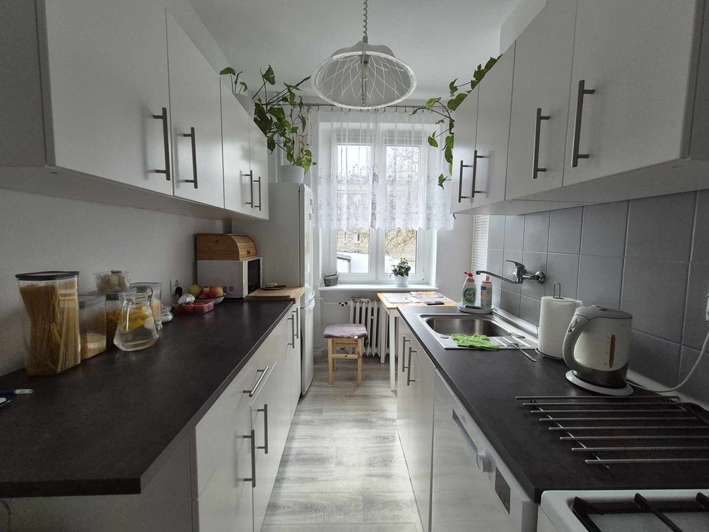 Mieszkanie położona przy bocznej ulicy w cichym zakątku. Bardzo dobry układ mieszkania, duże, ustawne pokoje. Okna w mieszkaniu PCV. Mieszkanie wychodzi na dwie strony świata. Na podłogach w pokojach panele. Łazienka z wc w glazurze i terakocie. Ogrzewanie i woda z sieci miejskiej, grzejniki bez podzielników ciepła.