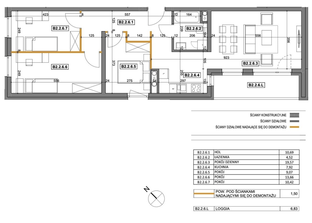 - pokoje sypialniane 13,66/10,42/9,07 m2