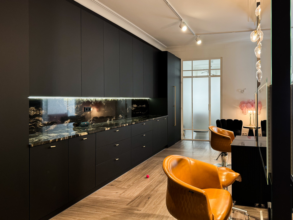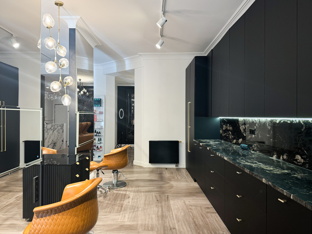 Trzy z czterech gabinetów mają dostęp do wody. A pomieszczenie z myjkami fryzjerskimi wyposażone jest w super wygodne fotele z masażami.