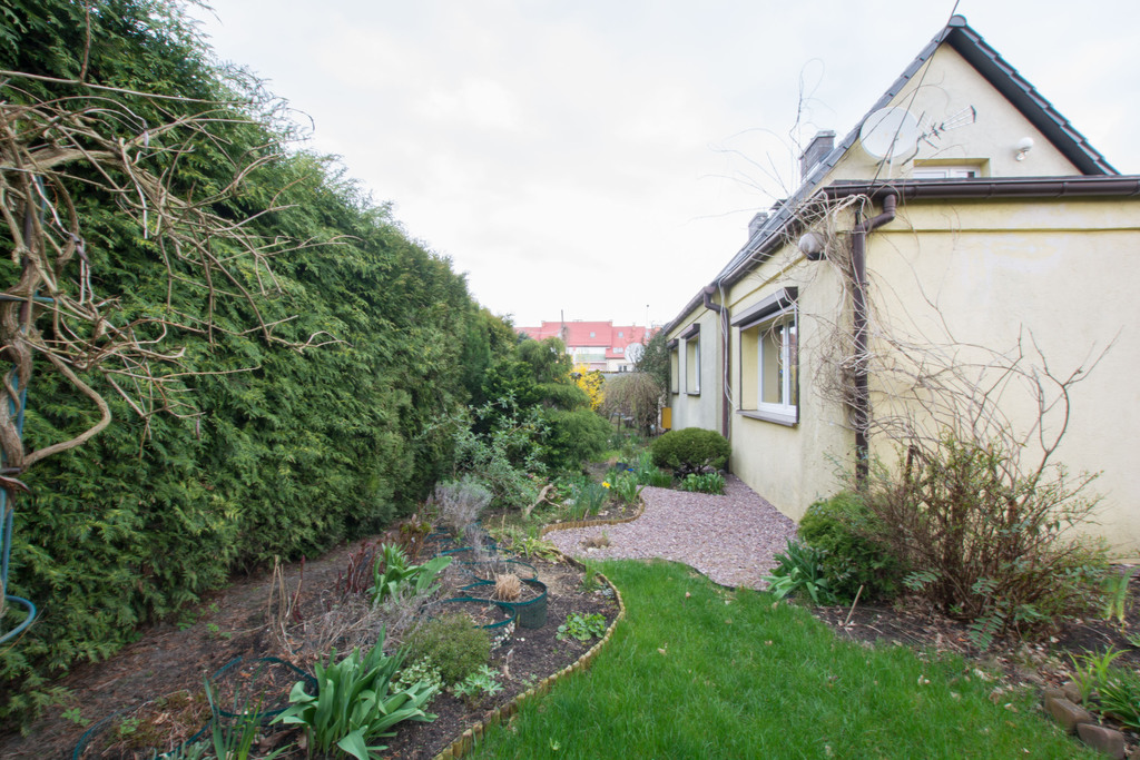 Na sprzedaż dom w zabudowie bliźniaczej w TOP lokalizacji Pogodno II, działka o powierzchni 520m2 (w kształcie prostokąta wymiary 21x25m) słoneczny ogród, dający poczucie intymności i spokoju.