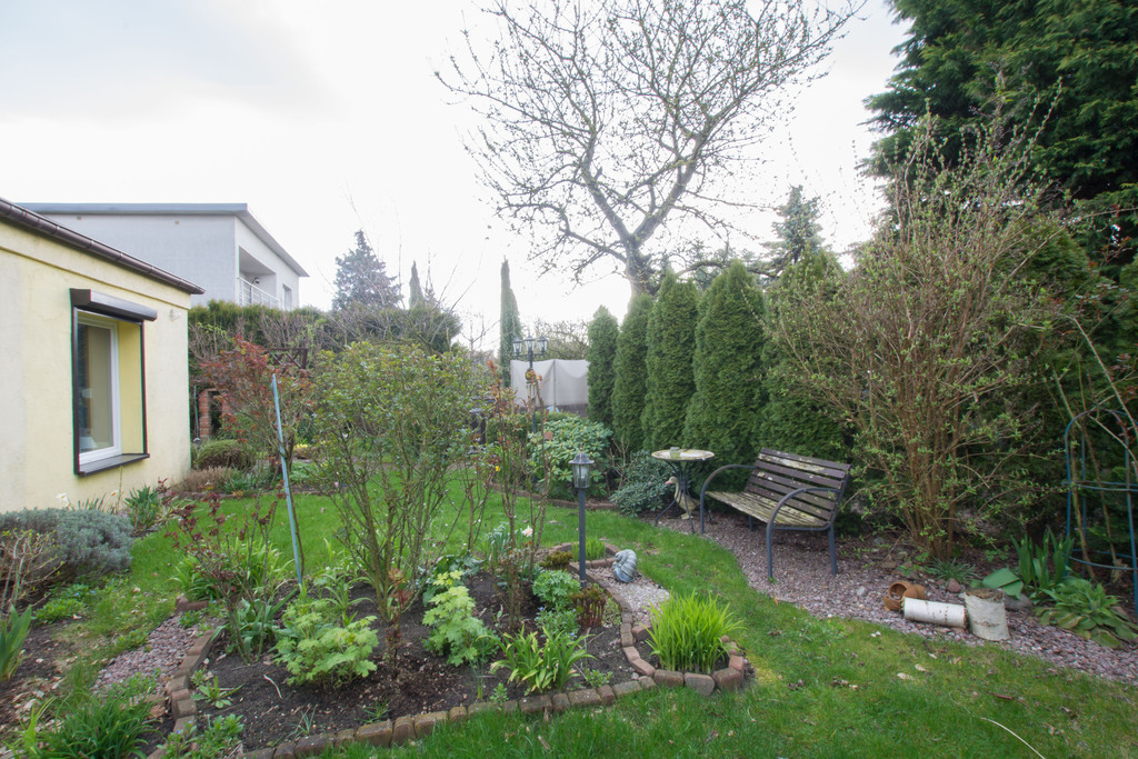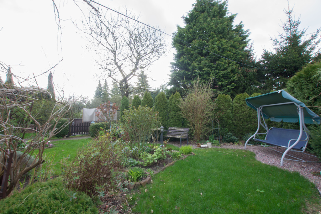 Przestronny ogród, otoczony tujami, tarasu z wyjściem bezpośrednio z poddasza, dwa pomieszczenia gospodarcze, piwnica.