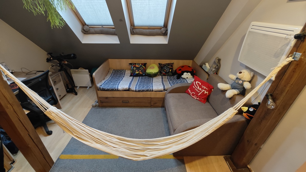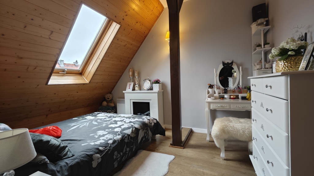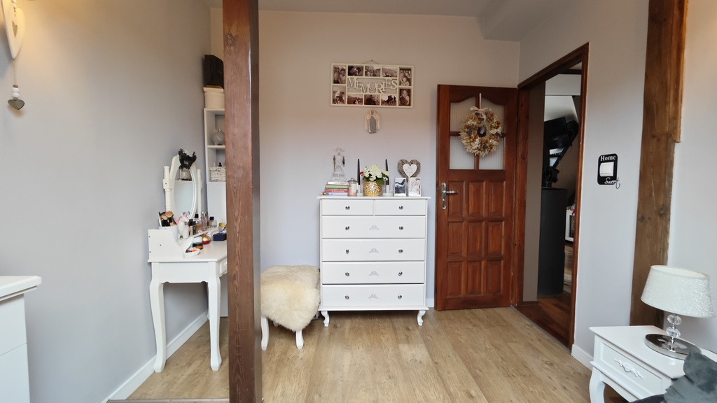 Mieszkanie jest adaptacją poddasza, które zostało oryginalnie wykończone. Mieszkania składa się z salonu, dwóch osobnych sypialni, kuchni z oknem otwartej na salon i hol oraz łazienki z toaletą (również z oknem). W salonie znajdują się drewniane (wygodne) schody prowadzące do garderoby z oknem znajdującej się nad salonem i holem. Istnieje możliwość zagospodarowania tego pomieszczenia na dodatkowy - czwarty pokój (kosztem garderoby). W jednej z sypialni mamy również antresolę do której wchodzimy poprzez rozsuwaną drabinkę, gdzie znajduje się dodatkowe miejsce do spania. Dużym atutem oferty jest również możliwość rozbudowy mieszkania o kolejny pokój poprzez zagospodarowanie pustej powierzchni strychu znajdującej się obok mieszkania o powierzchni użytkowej około 22m2 (zgoda spółdzielni).