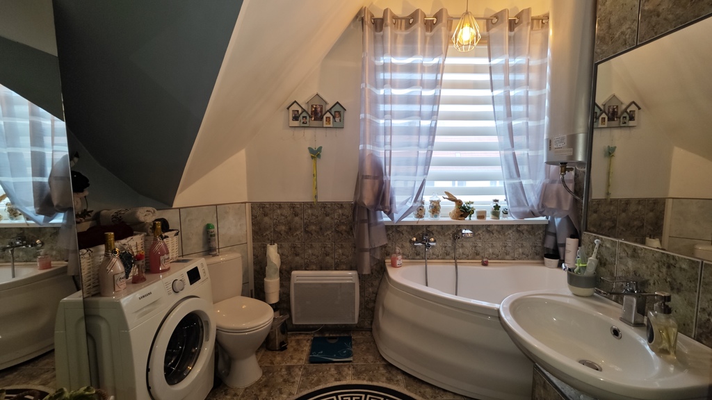 Ogrzewanie elektryczne plus klimatyczna koza "Thorma" znajdująca się w centralnym miejscu mieszkania (między salonem, kuchnią i holem). Kozą w okresie zimowym można spokojnie ogrzać całe mieszkanie !!! Ciepła woda - bojler elektryczny znajdujący się w łazience. Czynsz do spółdzielni na poziomie 600 zł (w tym m.in. fundusz remontowy, zimna woda, wywóz śmieci, opłaty za ogródek i piwnicę). W salonie, kuchni i łazience - lukarny z oknami pionowe PCV zaś w sypialniach i garderobie - okna połaciowe. Dodatkowo w salonie na obu oknach rolety zewnętrzne (strona zachodnia). Z obu sypialni i kuchni widok na wschodzące nad sąsiednimi budynkami słońce zaś w salonie można podziwiać w bezchmurne dni - piękne zachody słońca !!!