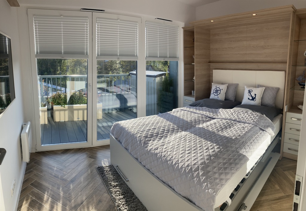 Mamy do zaoferowania piękny apartament w Dziwnowie o powierzchni 42,02m2 na którą składa się: salon z aneksem kuchennym i wyjściem na słoneczny balkon, sypialnia, łazienka i przedpokój. Nowoczesne mieszkanie zaprojektowane i wykończone z dbałością o każdy szczegół. W cenie pozostają meble w zabudowie stałej wykonane z wysokiej jakości materiałów. Sypialnia wyposażona jest w praktyczne łóżko składane, które możemy schować na potrzeby pozyskania dodatkowej przestrzeni. Pomieszczenia klimatyzowane, klatka schodowa monitorowana.