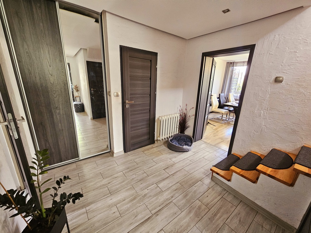 Oferujemy do sprzedaży dom w zabudowie bliźniaczej z lat 70-tych zlokalizowany w spokojnym zaułku Polic. Powierzchnia użytkowa nieruchomości wynosi 121,20m2, całkowita 151m2, a powierzchnia działki 550m2. Parter domu stanowi salon z wyjściem na taras i dalej na ogród, gabinet, kuchnia z oknem, łazienka w WC, przedpokój oraz przedsionek; na piętrze znajdują się cztery sypialnie oraz łazienka z WC. Dom po gruntownym remoncie w 2018 roku - wymienione okna, piec, podłogi, ściany gładzone, łazienki w glazurze i terakocie; ogrzewanie gazowe plus kominek z płaszczem wodnym. Budynek ocieplony, podpiwniczony. Ogród zadbany z licznymi nasadzeniami i automatycznym systemem nawadniania. Doskonała lokalizacja - w sąsiedztwie domy jednorodzinne i bliźniacze, spokojna okolica, blisko sklepów, przystanków, itp. Dodatkowym atutem - garaż - w cenie domu. Serdecznie zapraszam na prezentację!