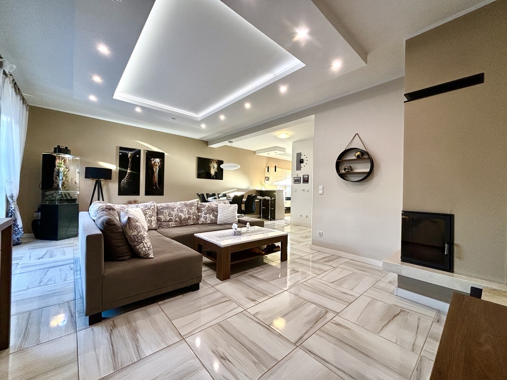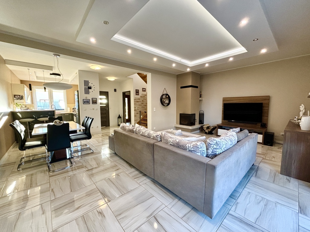- Salon (29,15m2) z kominkiem i bezpośrednim wyjściem do ogrodu,