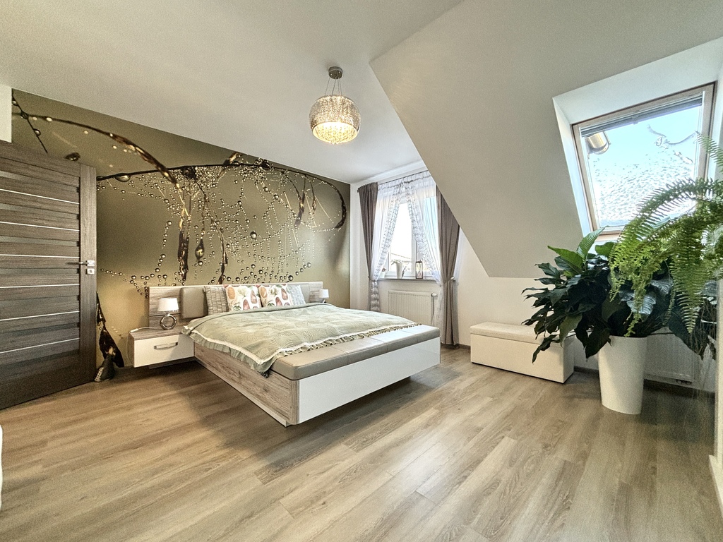 - Cztery sypialnie (ok.16, 16, 12 i 12m2), z czego jedna jest z własną garderobą (3,8m2),