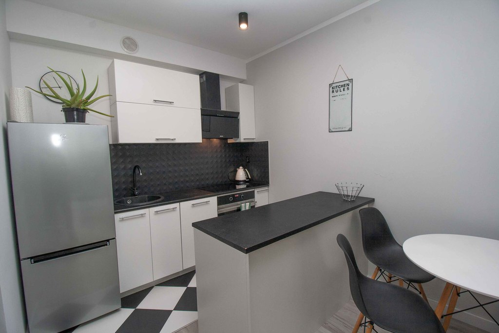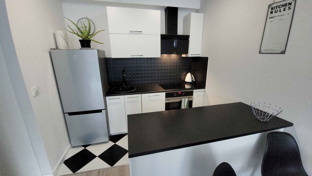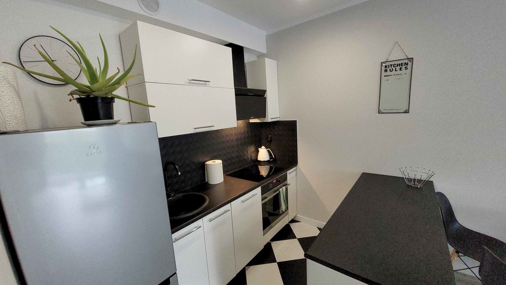 Kuchnia wykonana w nowoczesnym stylu ze sprzętami wysokiej jakości: zmywarka 45cm, lodówka, płyta indukcyjna wymieniona rok temu, wielofunkcyjny piekarnik .
