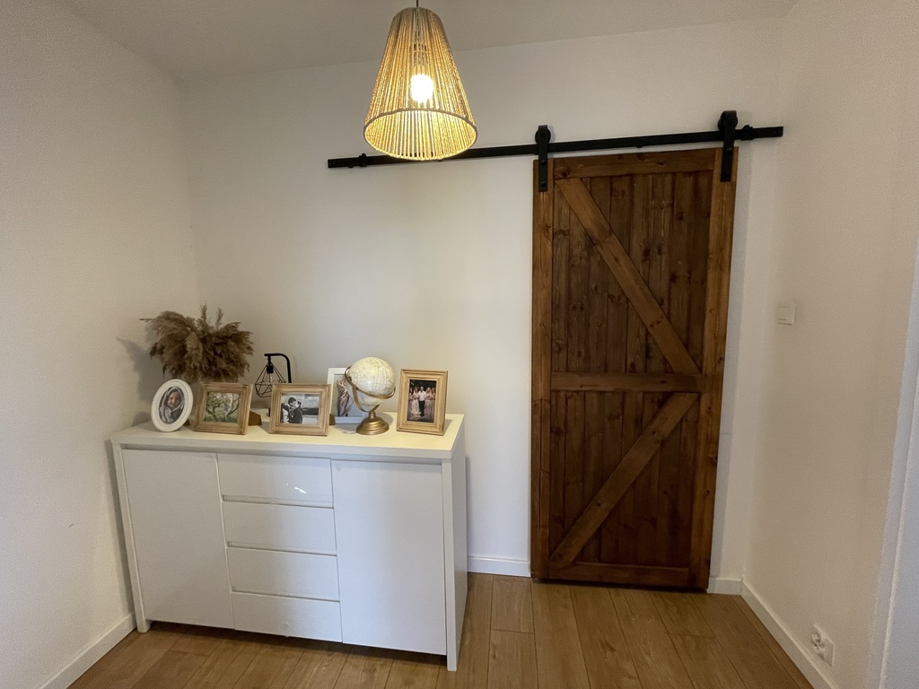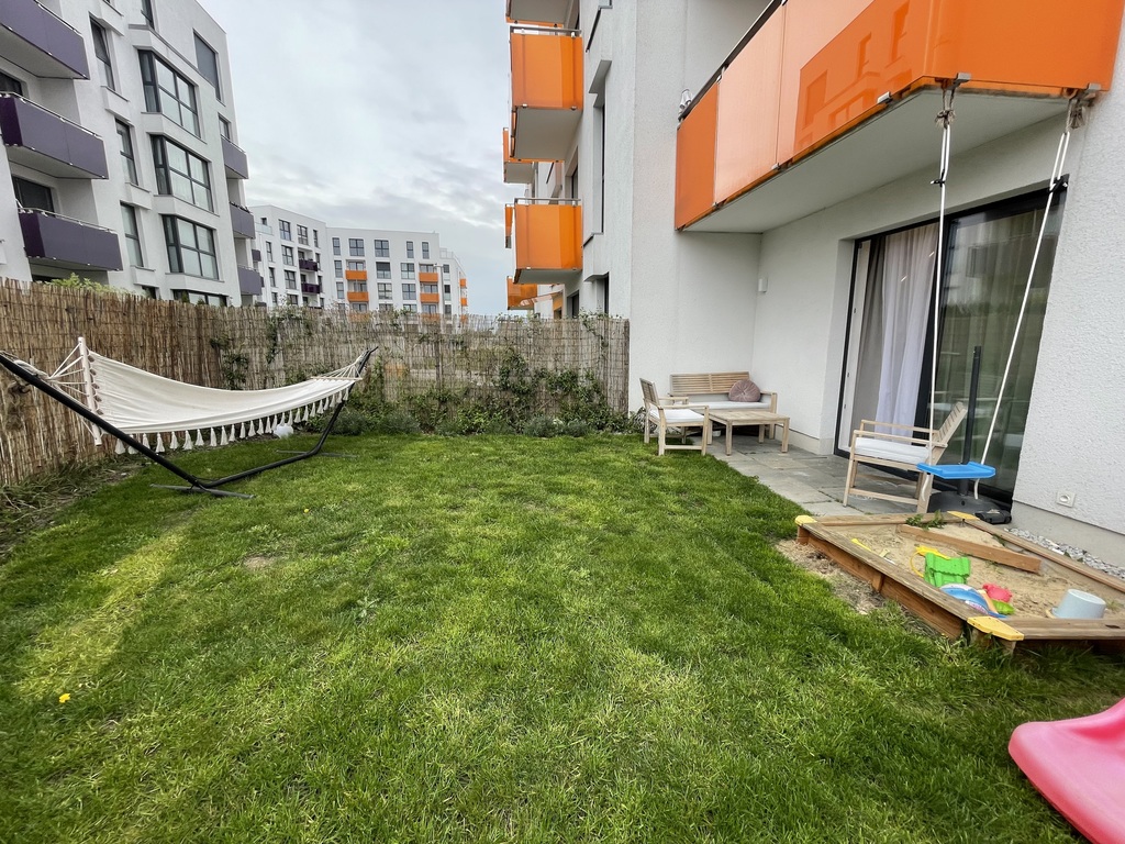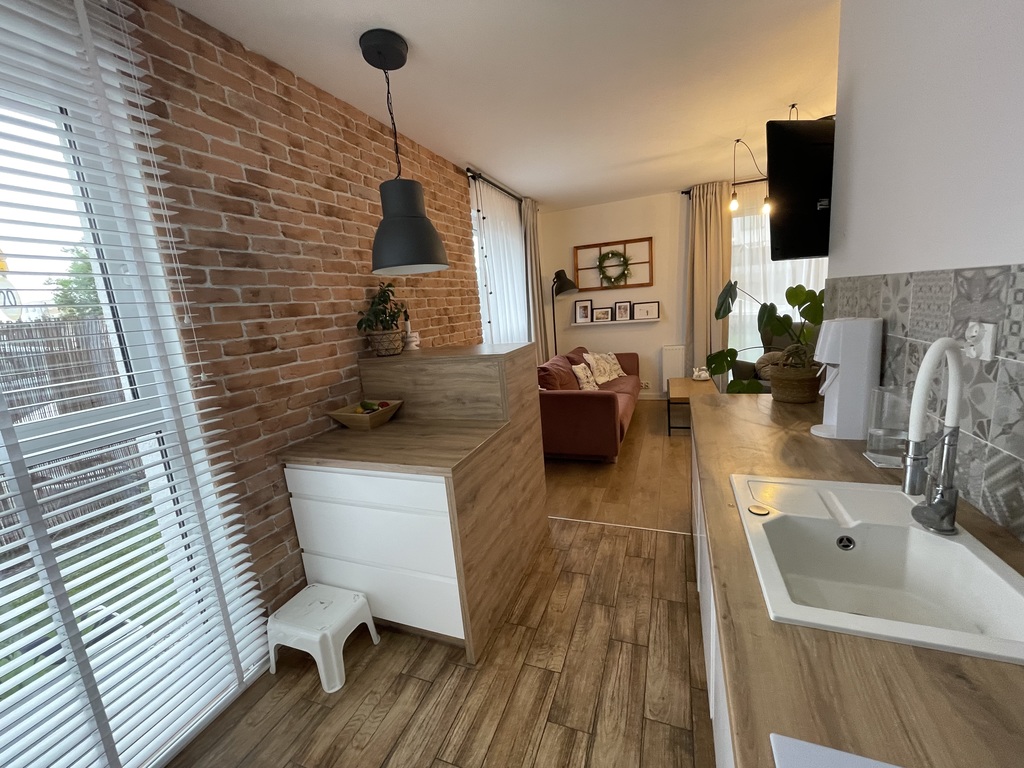 Mieszkanie ma powierzchnię 67,3m2, natomiast przylegający ogród 56m2. W garderobie na piętrze można również zrobić łazienkę, są wszystkie przyłącza.
