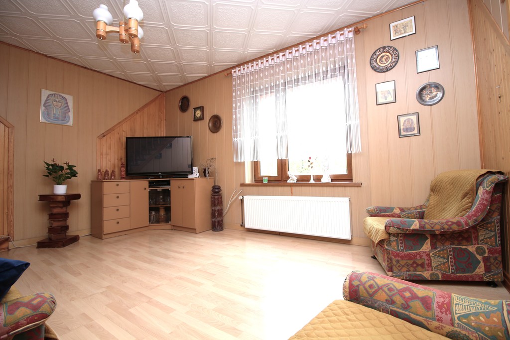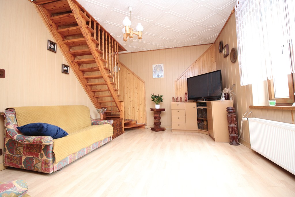 - salon - z salonu na poddasze prowadzą drewniane schody