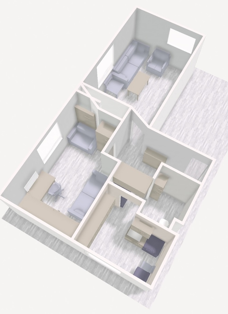 Mieszkanie o powierzchni 47 m2 znajduje się na pierwszym piętrze.