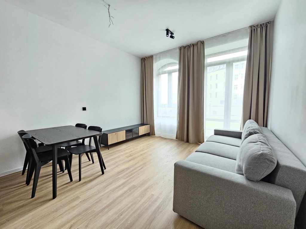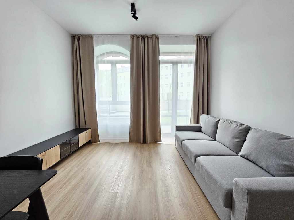 Słoneczne nowe 38,6 m2 2-pokojowe mieszkanie. Składa się z dwóch oddzielnych sypialni (bądź sypialni i salonu), które zapewniają prywatność i komfort przestrzeni do spania. budynek otoczony jest innymi kamienicami co zapewnia spokój i ciszę. Inwestycja smart loft została zrealizowana w budynku dawnej fabryki papieru Wiese&Co.
