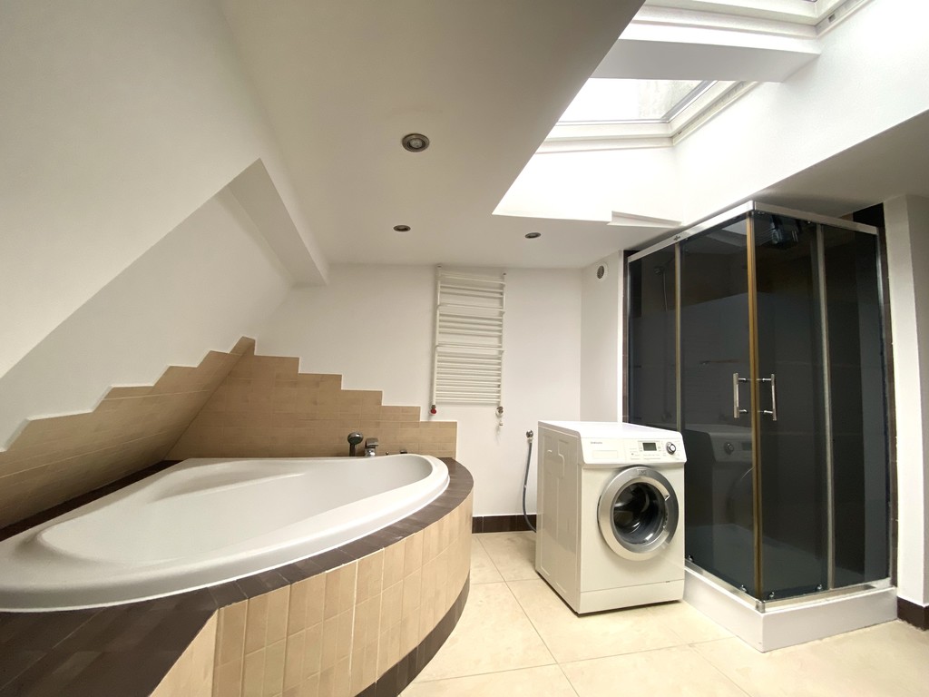 *bathroom equipped with: shower cabin and corner bathtub