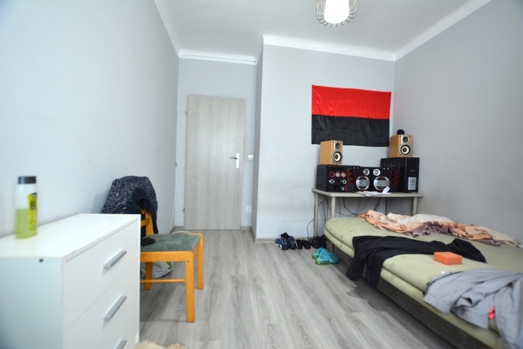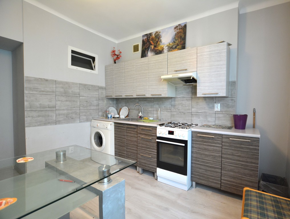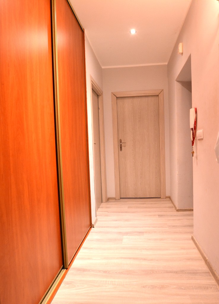 Dwa pokoje, łazienka, kuchnia i korytarz. W pokojach na podłodze panele. Ściany malowane. Okna PCV. Kuchnia samodzielna z oknem, wyposażona w meble w cenie zakupu. Glazura nad częścią roboczą.
