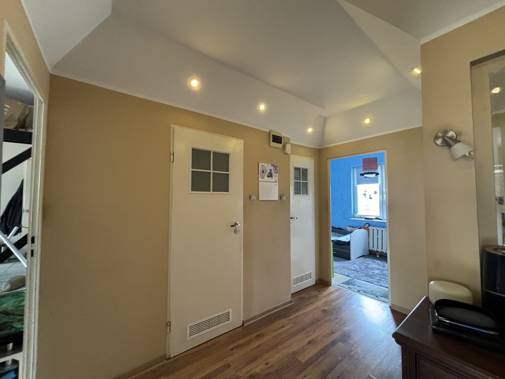 W pokojach i przedpokoju na podłogach położone są panele, ściany wygładzone i pomalowane.