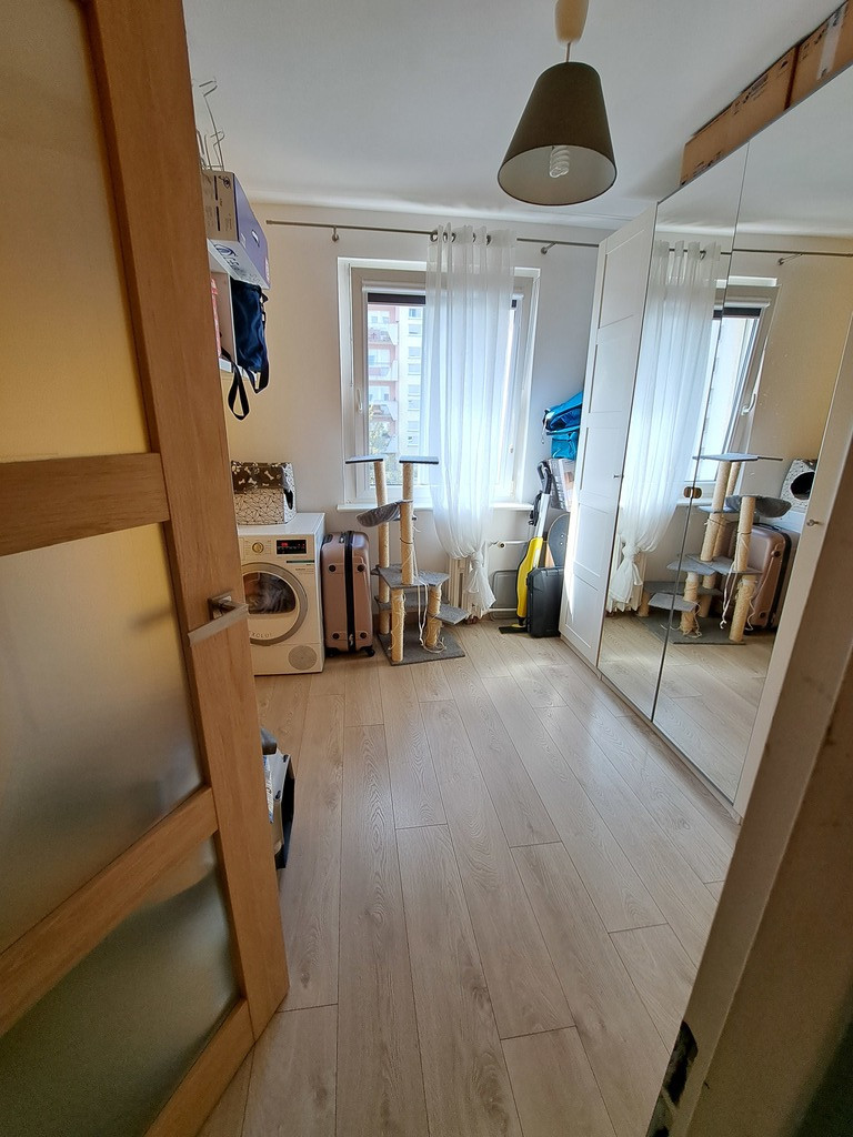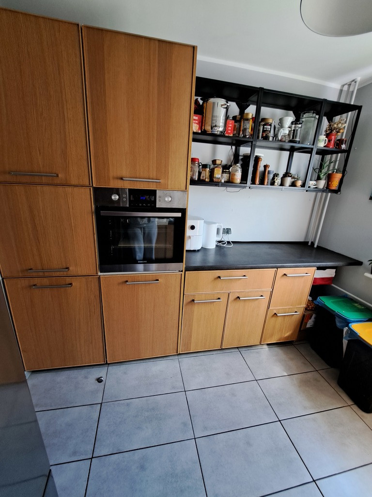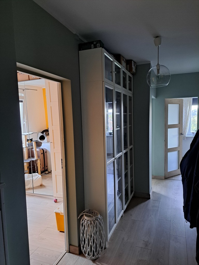 Mieszkanie oferowane jest do sprzedaży w bardzo dobrym standardzie. W pokojach ściany gładzone i malowane plus częściowo ozdobne tapety. Mieszkanie w maju 2022 przeszło generalne odświeżenie w postaci całościowego malowania. Na podłodze w pokojach i przedpokoju panele. W kuchni terakota na podłodze plus częściowo glazura na ścianach. W cenie pozostaje pełne umeblowanie kuchenne IKEA w systemie METOD, regały ENHET plus sprzęt AGD - płyta gazowa Samsung w zabudowie, okap Amica, zmywarka Bosch w zabudowie, piekarnik Samsung w zabudowie oraz lodówka Samsung A+++. Łazienka i toaleta osobno. W łazience na podłodze terakota, na ścianach glazura. W łazience wanna zabudowana glazurą ze szklanym parawanem prysznicowym, regałem ENHET oraz umywalka z szafką. Nad wanną składany wieszak na ręczniki. W toalecie zabudowany geberit podtynkowy, nad nim szafka oraz dodatkowa umywalka. W przedpokoju pozostają duża szafa typu Komandor oraz podwójny regał na książki Billy wyposażony w szklane drzwi. W jednej z sypialni pozostaje zabudowa Ikea w systemie PAX w wykonaniu własnego projektu.