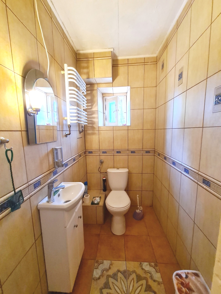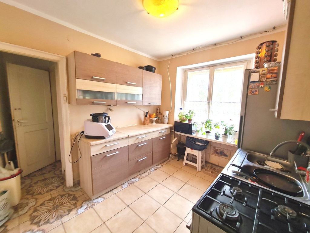 Na powierzchni 114,62 m2 znajdują się : cztery pokoje, kuchnia, łazienka, toaleta, przedpokój oraz pomieszczenie gospodarcze na parterze ok 14 m2 z oknem i drzwiami wychodzącymi na ogród. Dodatkowo dwie piwnice o powierzchni 30,80 m2 oraz 9 m2. Z tyłu domu część ogrodu do własnego użytku z możliwością dzierżawy od ZGKiM większej części terenu.