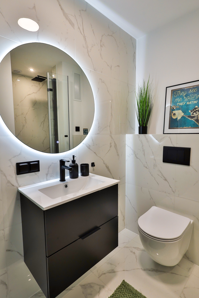 Łazienka została wyposażona w nowoczesne sanitariaty oraz eleganckie płytki.