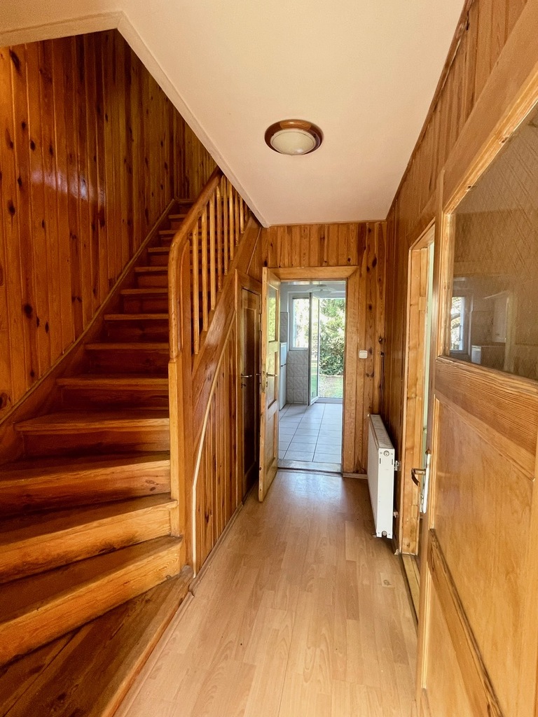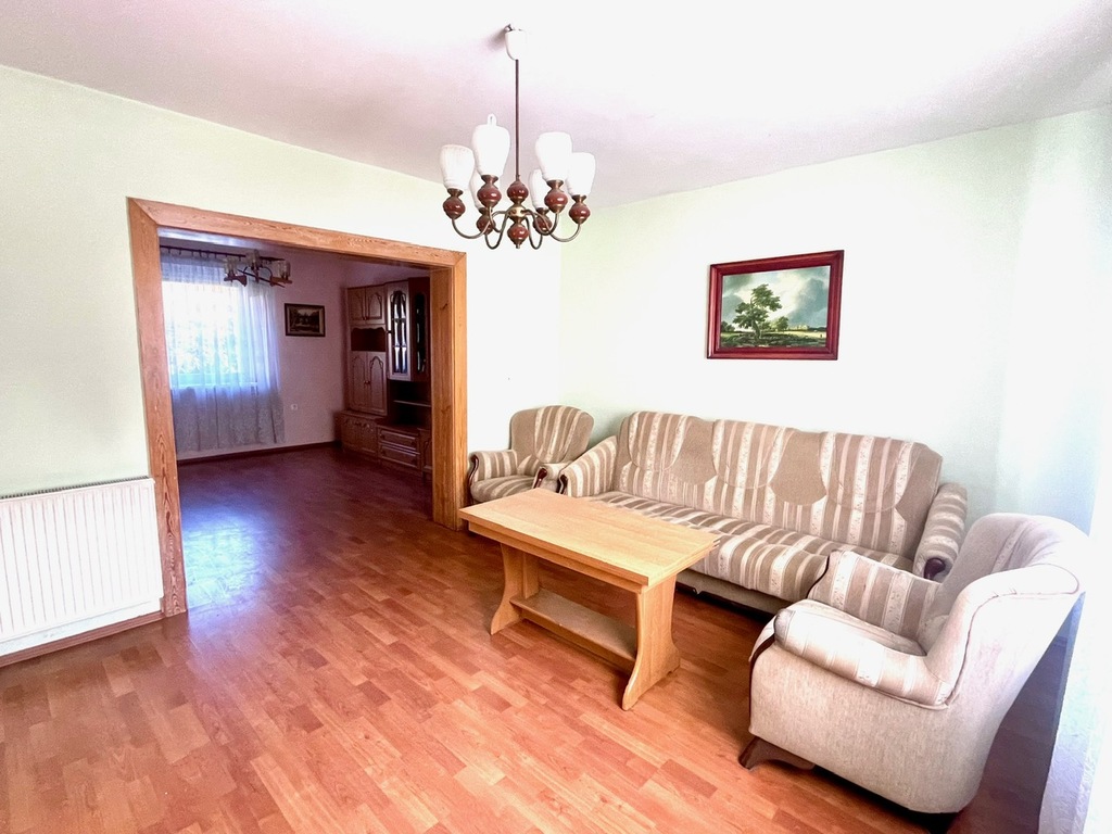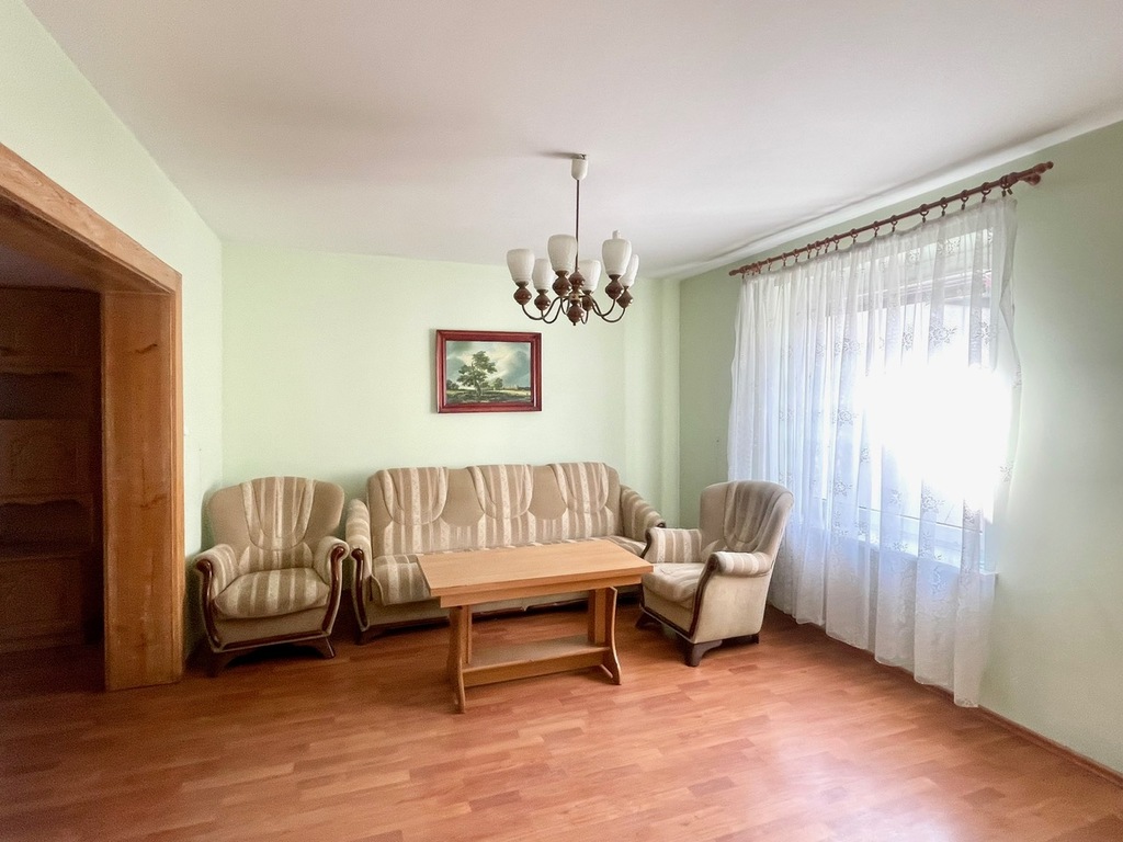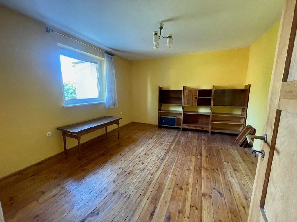 Na parterze dwa pokoje o pow. 16 i 14,5 m2, z przejściem pomiędzy; kuchnia (8,5m2) z wyjściem na ogród oraz niewielkie wc. Ściana pomiędzy pokojem a kuchnią działowa, daje to wiele możliwości aranżacyjnych. Na pierwszym piętrze znajdują się 3 pokoje o pow.15,5m oraz 15,5m2 oraz mały pokoik o pow 4,5m2, a także łazienka z oknem, pow. 3,5m2.