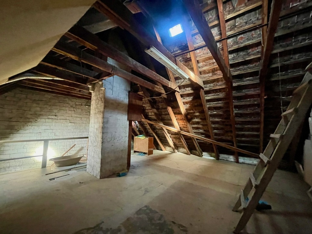 Strych suchy, ustawny,  po podłodze 46 m2, powierzchni użytkowej ok 20-25 m2, można zagospodarować na kolejne pokoje, czy pracownię, a także zrobić łazienkę.