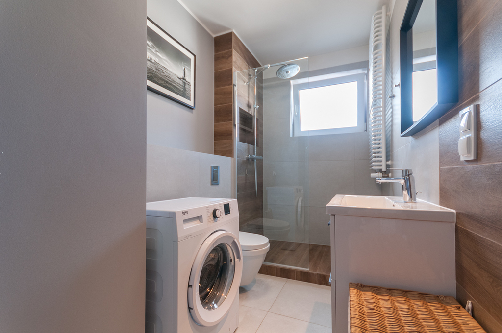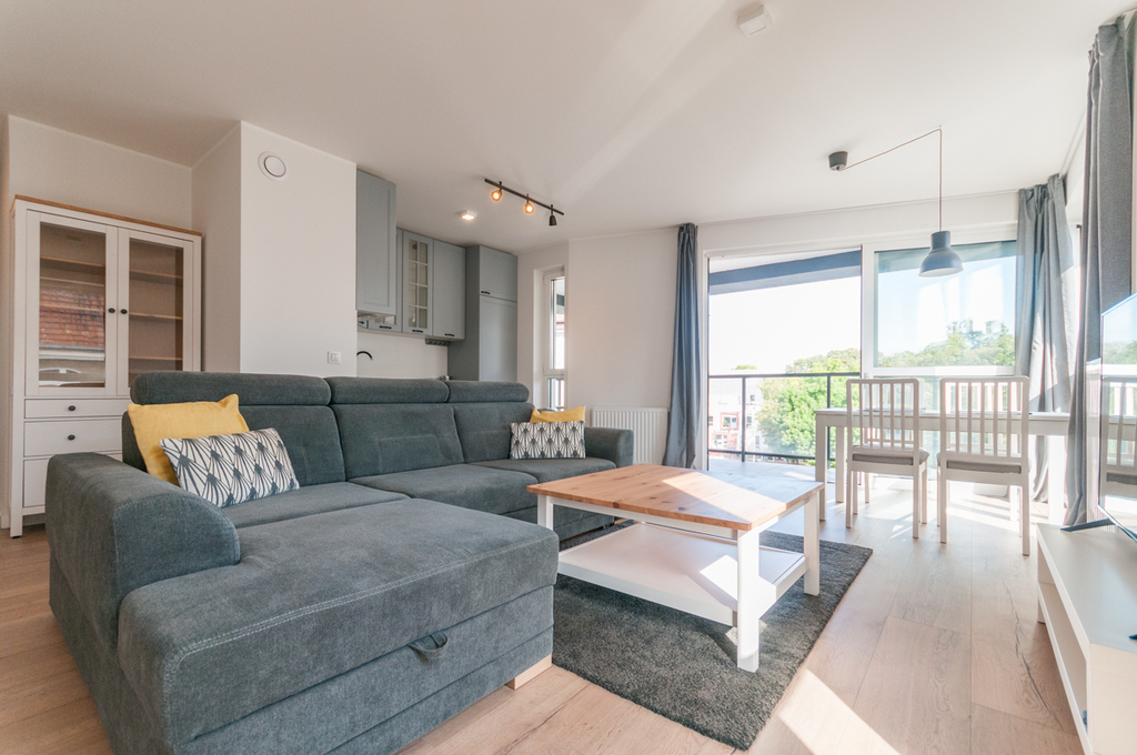 Apartament składa się z pokoju dziennego z aneksem kuchennym, skąd jest wyjście na duży balkon - widok na Teatr Lalek Pleciuga! Dwie ustawne sypialnie z dużymi łóżkami małżeńskimi. Łazienka z oknem, kabina prysznicowa z odpływem liniowym, pralka; osobne WC i spory przedpokój.