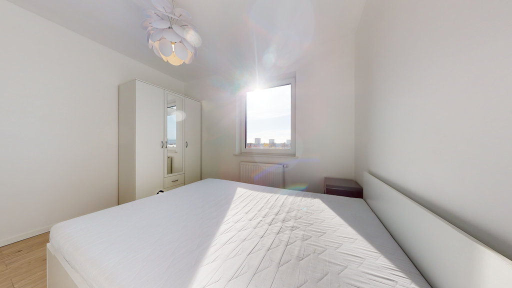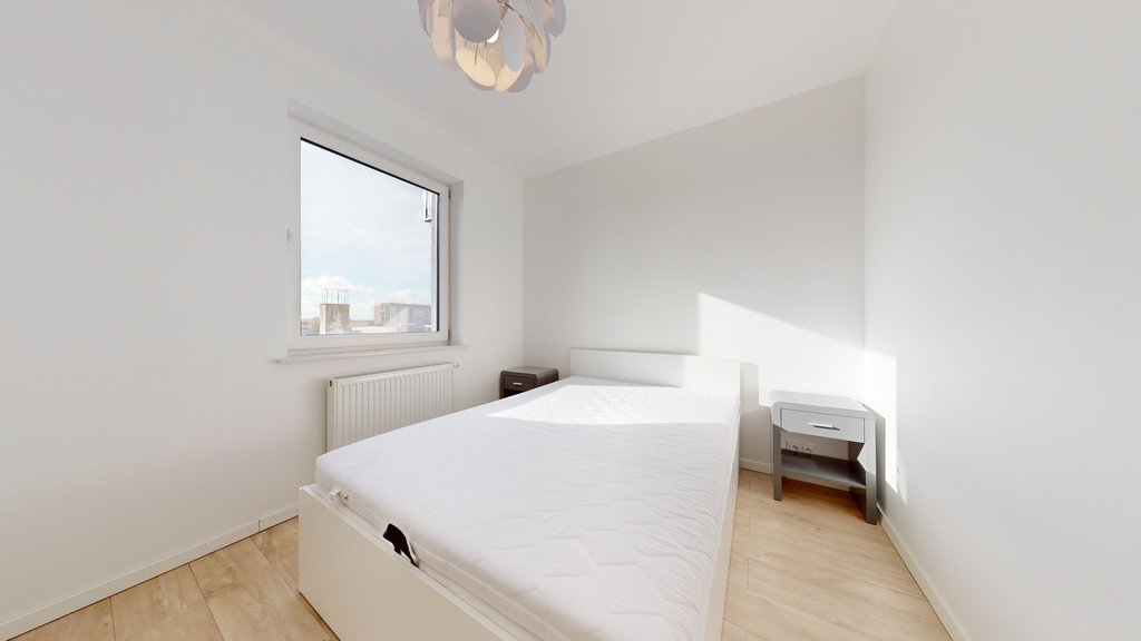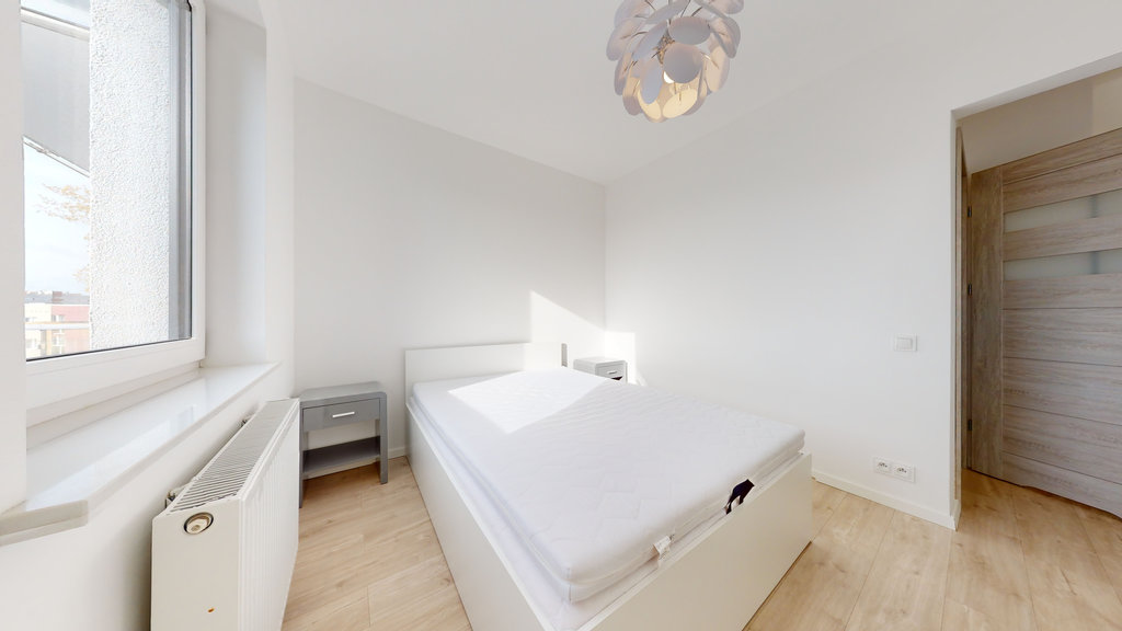 Apartament mieści się na IV piętrze, oferuje ładny widok z tarasu oraz kapitalny rozkład pomieszczeń. W skład lokalu wchodzą: