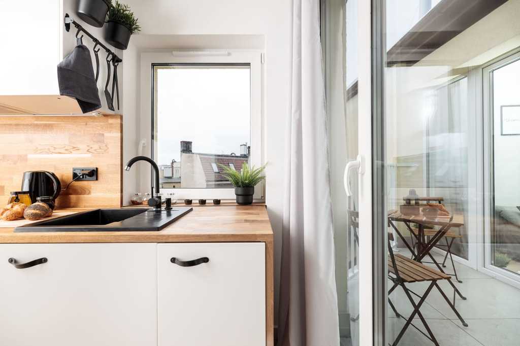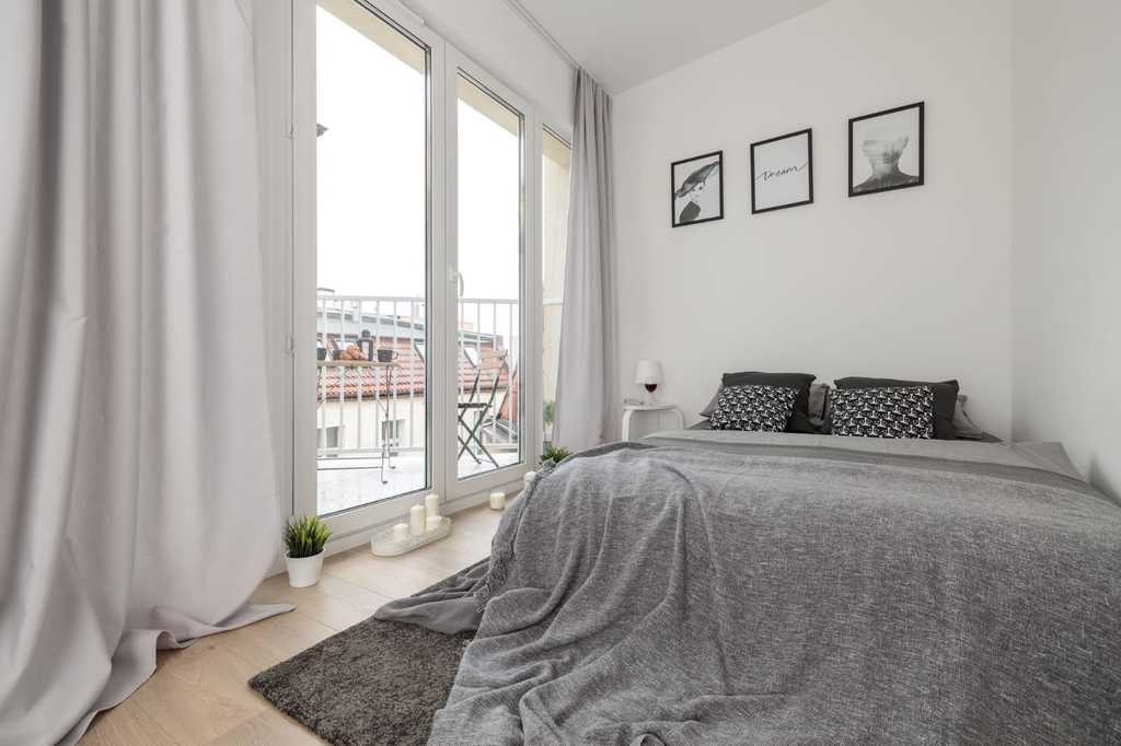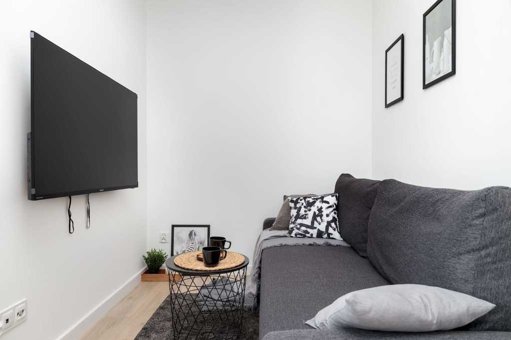 Pokoje w pełni umeblowane. Salon funkcjonalny, podzielony na 3 strefy: kuchenną, jadalnianą oraz wypoczynkową. Sypialnia bardzo dobrze doświetlona. Z obu pokoi wyjście na duży balkon. Kuchnia widna, w pełni wyposażona. Duża łazienka z wanną, WC, umywalką oraz pralką.