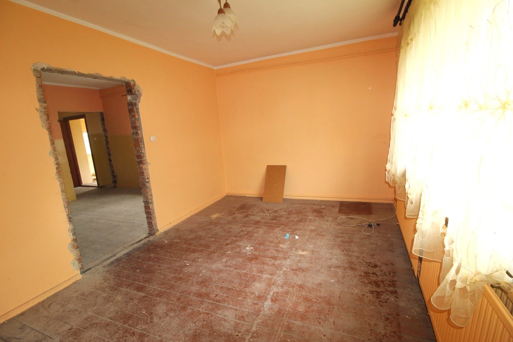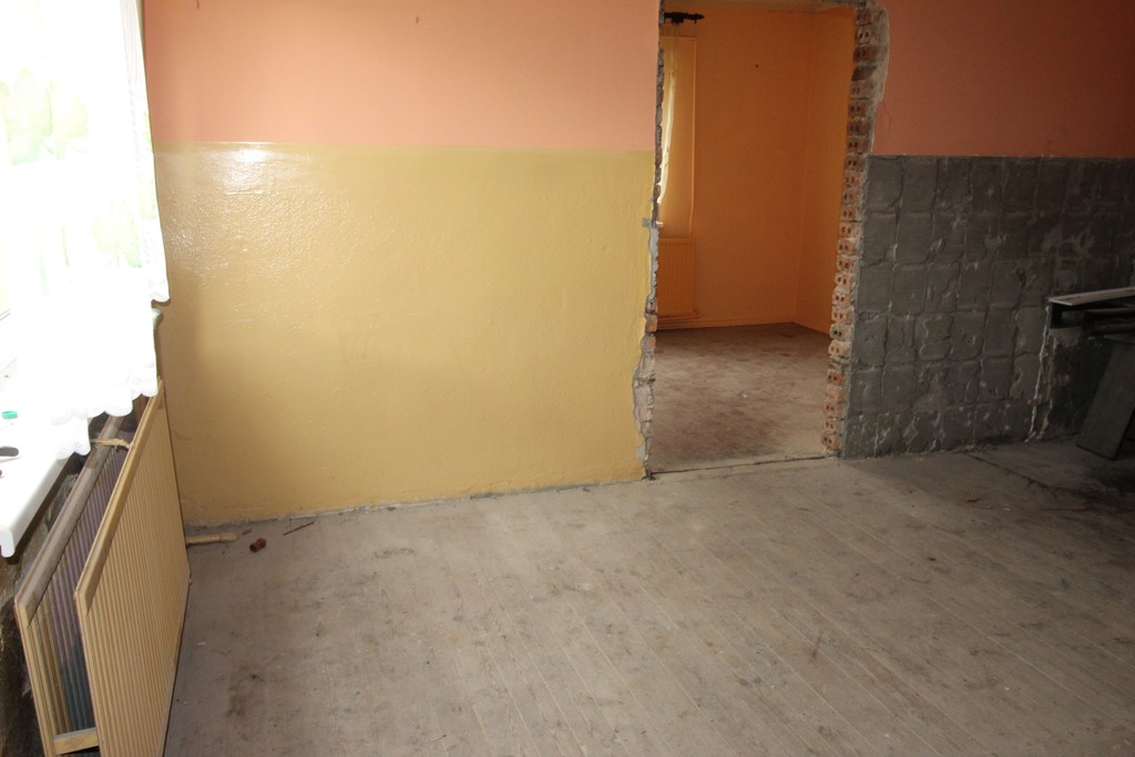 Dom wybudowany z czerwonej cegły. Dach pokryty blachodachówką oraz dachówką cementową (betonową) - zostały zakupione materiały do wymiany drugiej części dachu. Okna PCV - dwuszybowe. Nieruchomość do remontu. Został wykonany i zakupiony projekt zaadaptowania domu wraz z aranżacją - dzięki temu nowy nabywca ma gotowe rozwiązanie :). Ogrzewanie - piec na węgiel i drzewo typu ,,śmietnik" z 2005 r. w piwnicy. Grzejniki aluminiowe. Na podłogach linoleum, deska podłogowa, płytki. Całość posesji ogrodzona siatką.