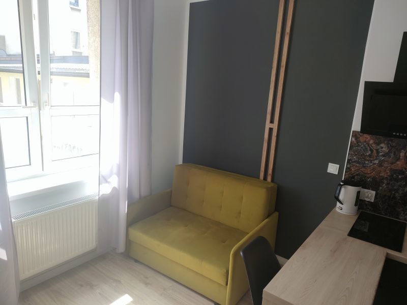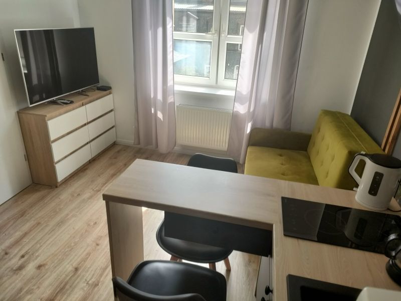Apartament jest w pełni wyposażony i gotowy do zamieszkania. Na niecałe 20m2, jest idealnie skonfigurowany,z małego salonu połączonego z wyposażonym aneksem kuchennym,przejściem do zamykanej sypialni,oraz łazienki z prysznicem ,umywalką i WC.W łazience również znajduje się pralka. Czynsz na poziomie 290zł,w skład którego wchodzi zaliczka na ogrzewanie,śmieci i fundusz remontowy.