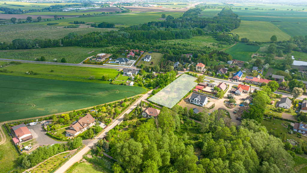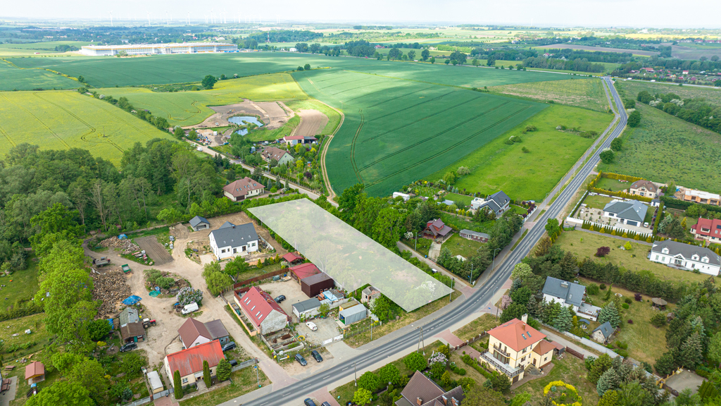 Działka położona przy głównej ulicy wśród zabudowy jednorodzinnej. Teren płaski o powierzchni 3443 m2.