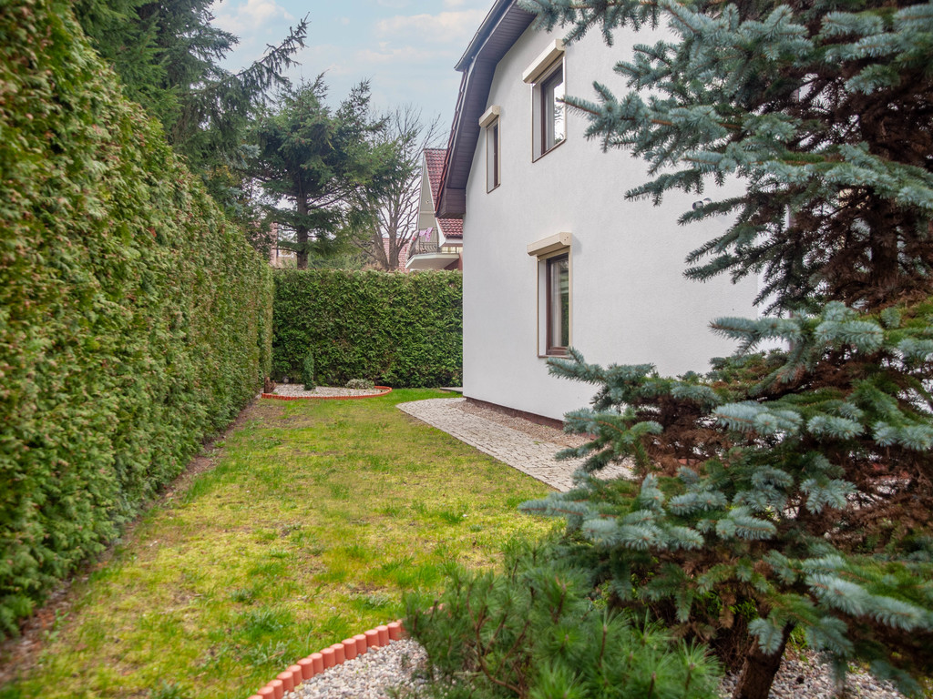 Dom posiada garaż o pow. ok. 16m2 z bramą na pilota i połączony jest wejściem do domu (co ułatwia wnoszenie zakupów).