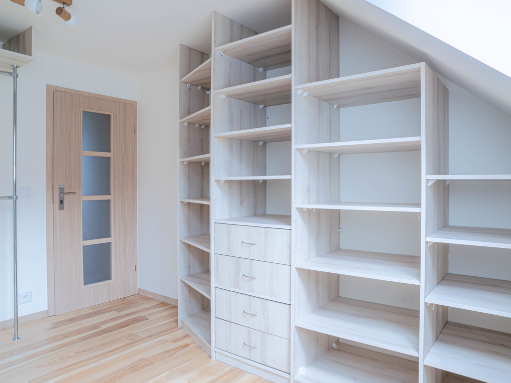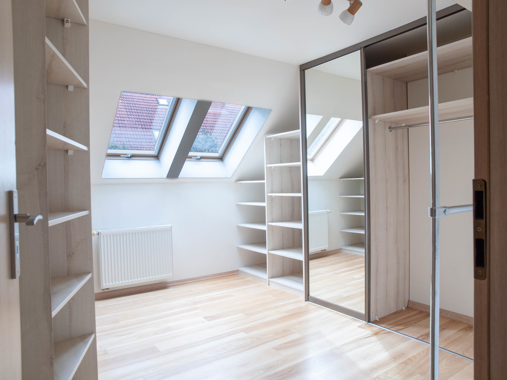 Poddasze zagospodarowane na garderobę z oknem.