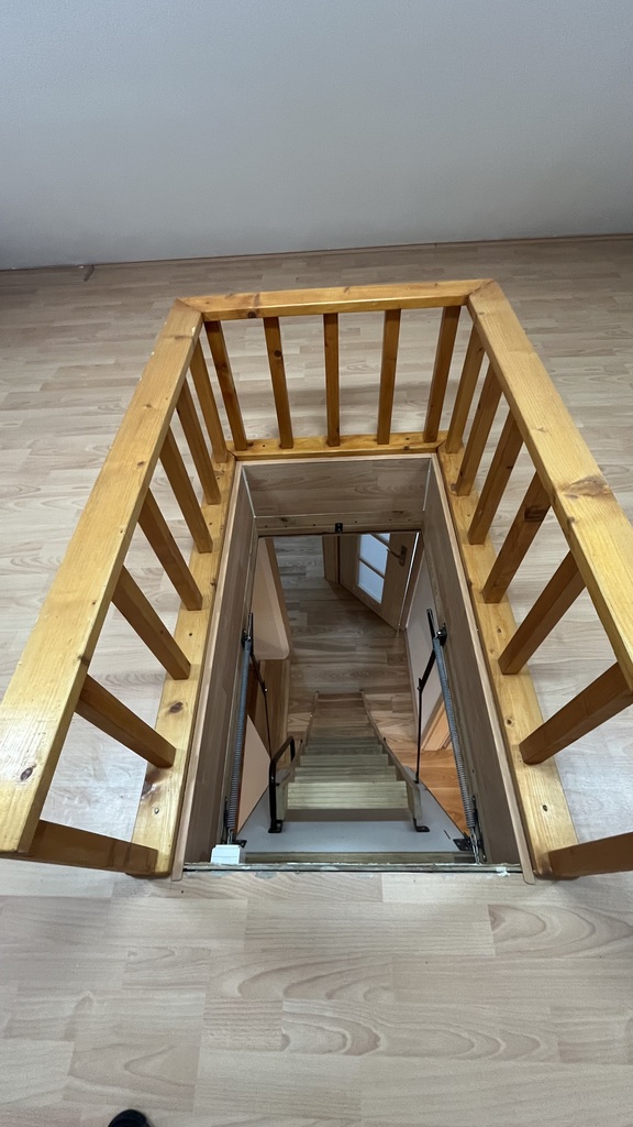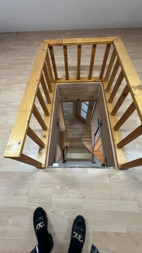Na piętro prowadzą bardzo wygodne drewniane schody z balustradą.
