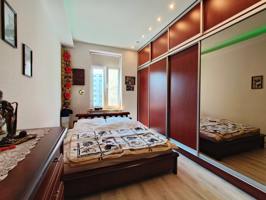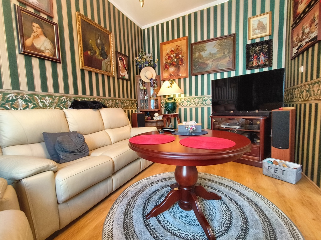 Mieszkanie jest częściowo po remoncie, w 2019 roku kuchnia i sypialnia pokój 2. Inne pomieszczenia przeszły remont kilka lat wcześniej. Mieszkanie jest urządzone w stylu kolonialnym. Obecnie jeden pokój przejściowy, jest możliwość przywrócenia pełnego rozkładu. W mieszkaniu nie ma gazu natomiast jest podłączona siła.