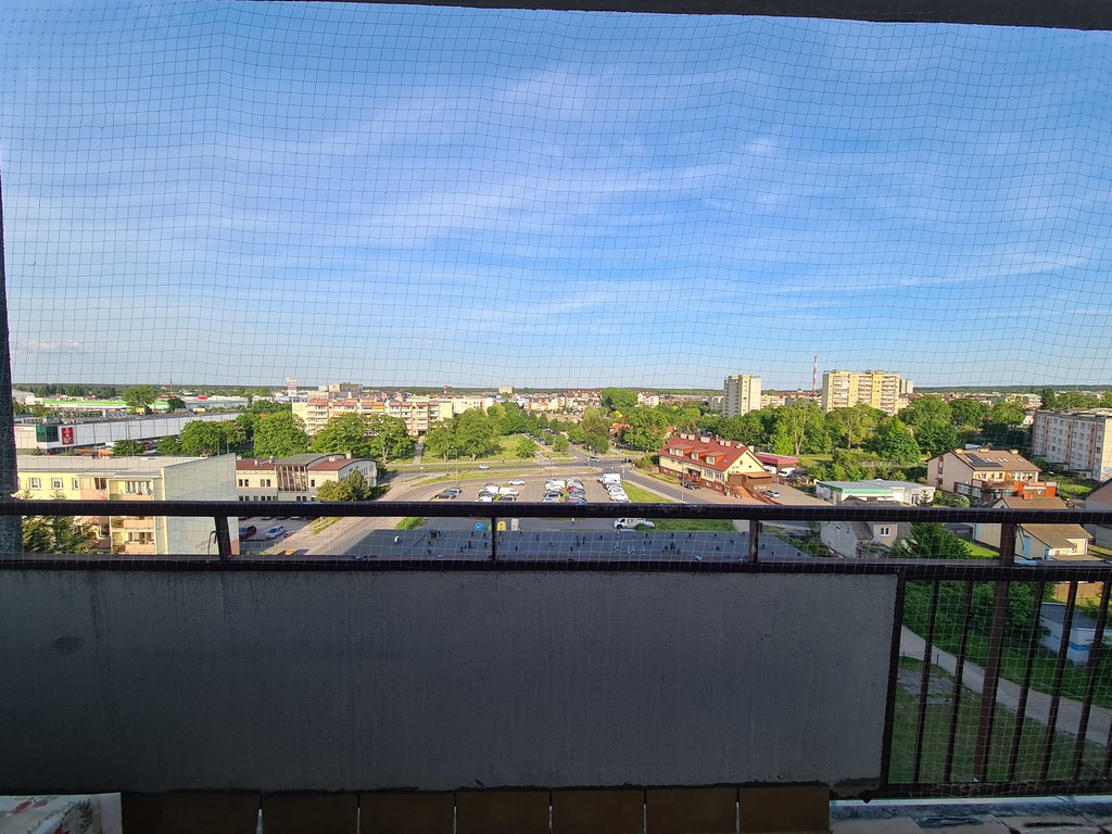 Oferujemy na sprzedaż mieszkanie dwupokojowe na ósmym piętrze w wieżowcu. Na powierzchni 49,42 m2 znajdują się : przedpokój, salon z wyjściem na balkon, pokój, kuchnia oraz łazienka z toaletą. Nieruchomość jest w stanie do odświeżenia. Na podłodze panele, okna PCV. Ogrzewanie i ciepła woda z sieci miejskiej. Czynsz przy trzech osobach wynosi 799 zł i zawiera zaliczki na ogrzewanie, zaliczki na wodę, gaz, śmieci i fundusz remontowy (wspólnota Agida). Do lokalu przynależy również piwnica. W budynku wymieniona całkiem nowa winda. Liczne miejsca do parkowania przed blokiem. W okolicy przychodnia, liczne sklepy, apteka, urząd miejski, komunikacja miejska. Mieszkanie do wydania w ciągu miesiąca.