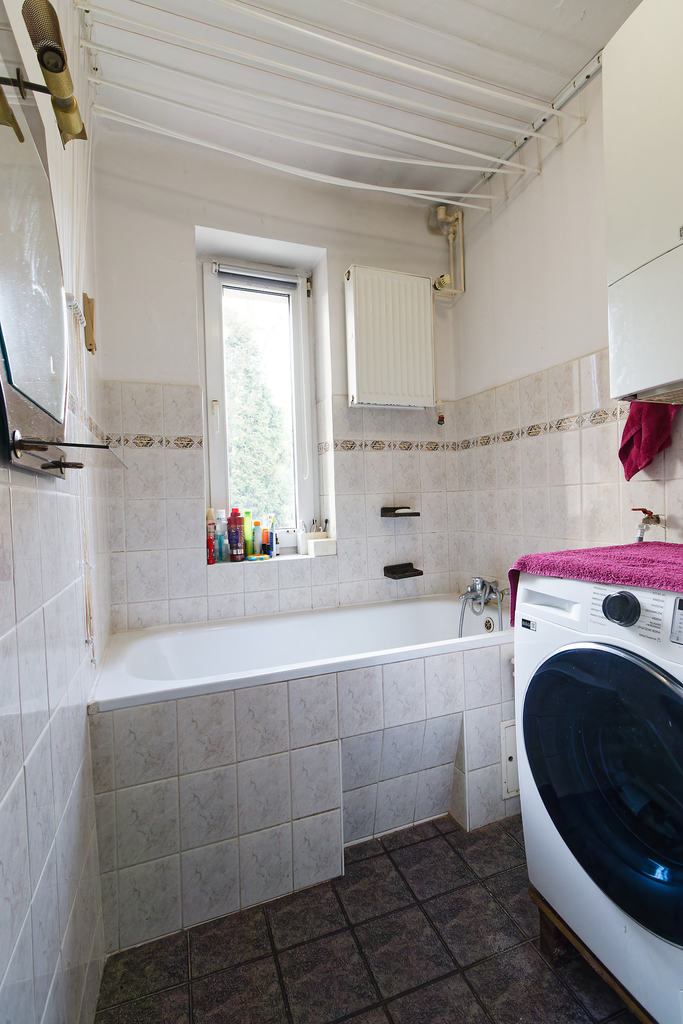 Mieszkanie posiada jasną łazienkę z oknem oraz osobną toaletę.