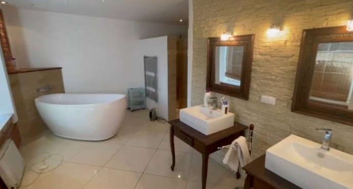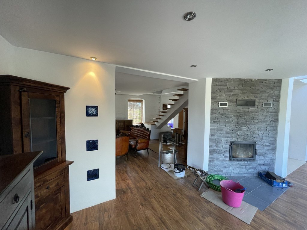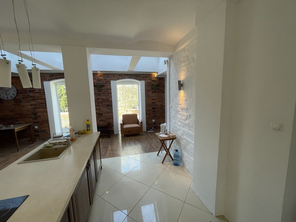 Ten przestronny dom bliźniak oferuje wiele możliwości dla przyszłych właścicieli. Na parterze znajduje się przestronny salon, jadalnia oraz w pełni wyposażona kuchnia. Duże okna wpuszczają mnóstwo naturalnego światła, dodając przytulnego i jasnego charakteru całemu wnętrzu. Ponadto, na tym samym poziomie znajduje się również łazienka oraz pomieszczenie gospodarcze, które można wykorzystać jako pralnię lub spiżarnię. Podgrzanie wody przez bojler elektryczny, ogrzewanie — to ogrzewanie elektryczne podłogowe na parterze i dwa nowoczesne pieca na paliwo stałe.