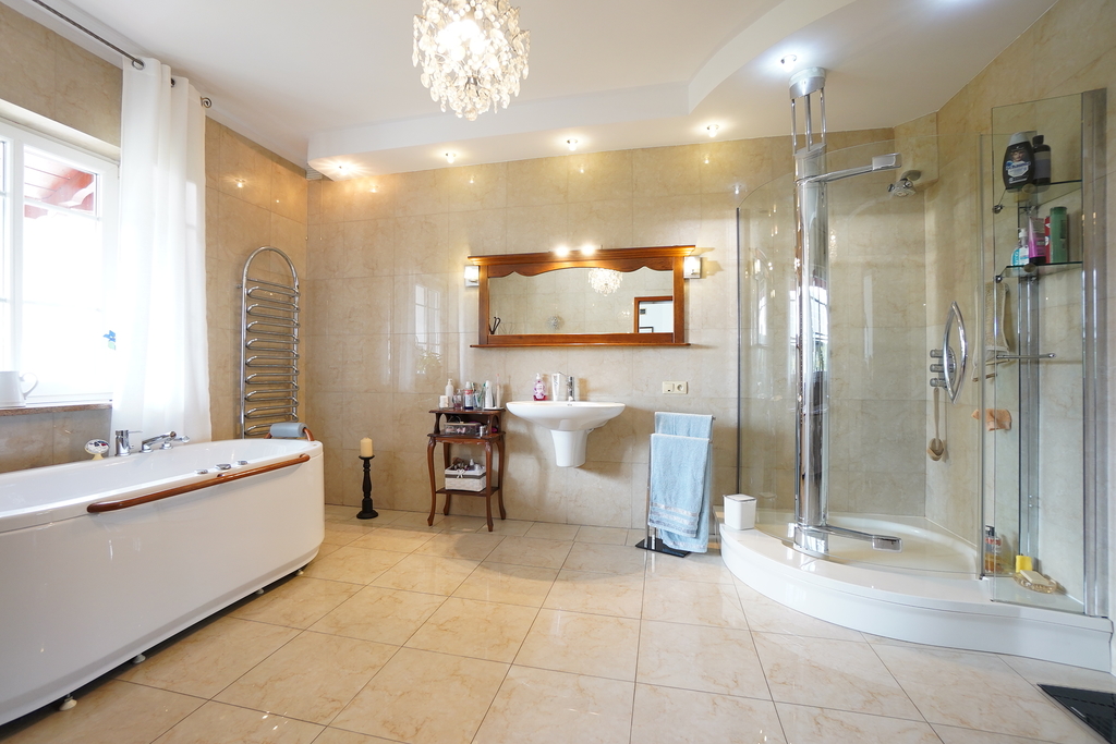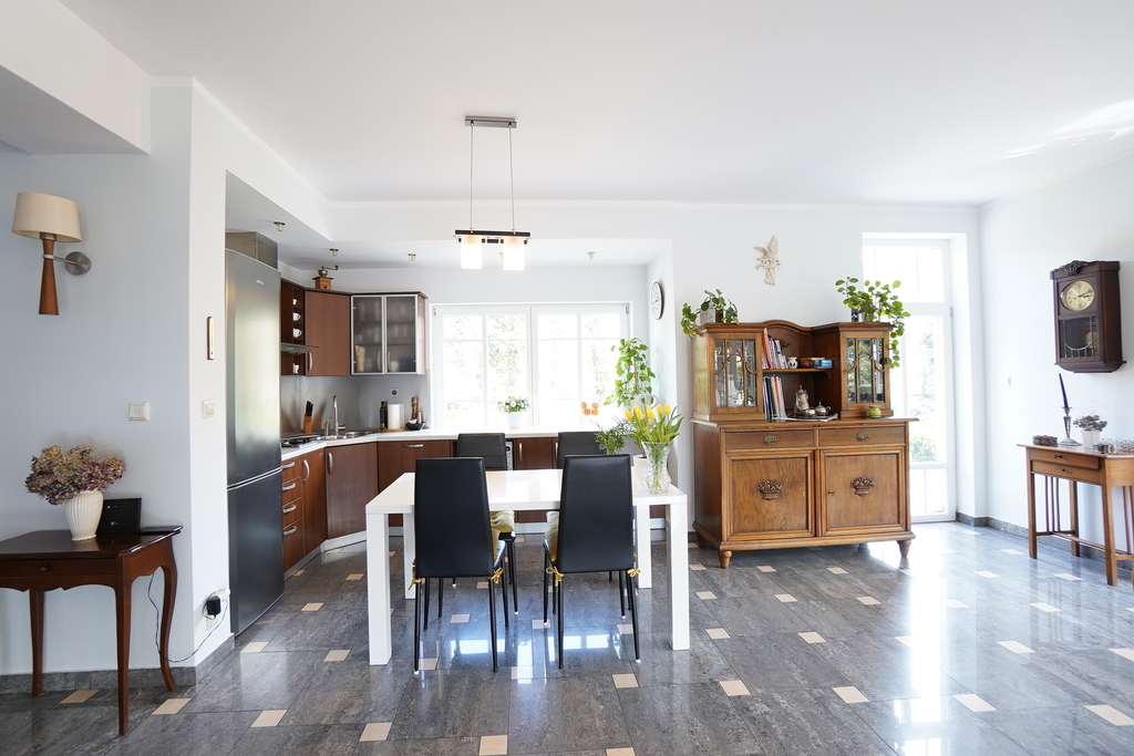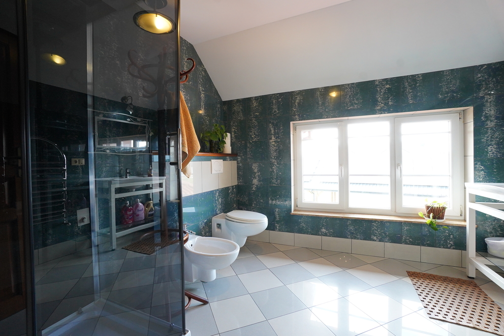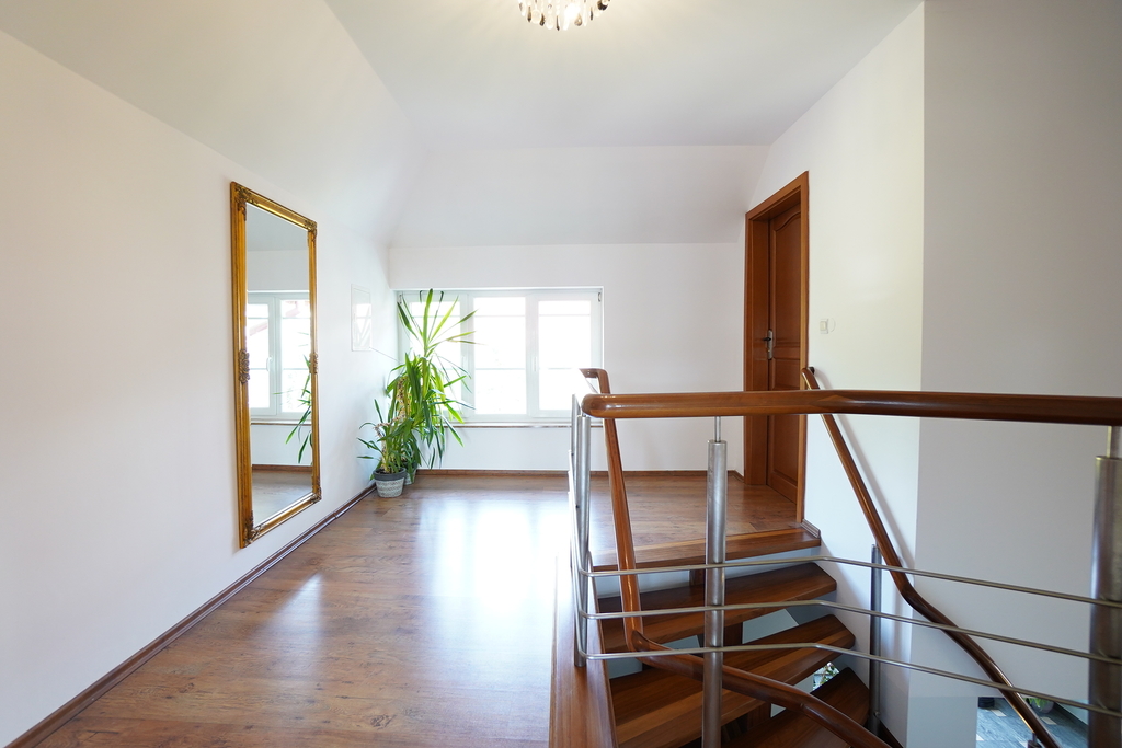 Dom posiada wiele nowoczesnych rozwiązań m.in: studnia głębinowa z hydroforem, instalacje alarmowe, kominek, ogrzewanie podłogowe. Dom jest wykonany z najwyższej jakości materiałów i jest gotowy do wprowadzenia się. Nieruchomość posiada wyjątkowy styl, z każdej strony domu wpada dużo światła, przez co wnętrze jest bardzo jasne .