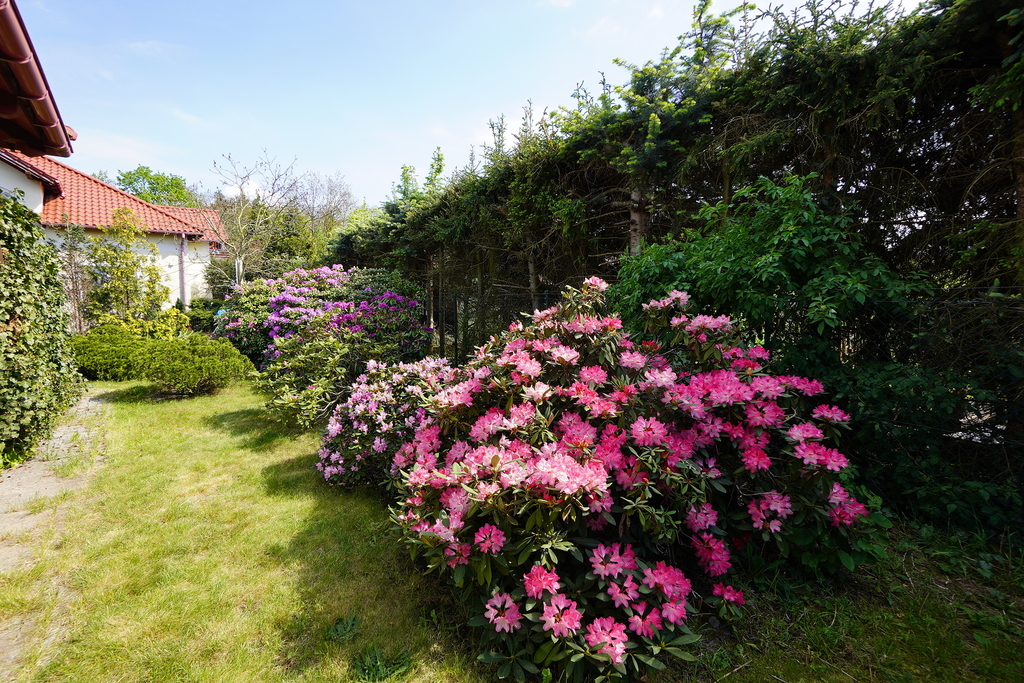 Działka ma powierzchnię 990m2, jest zadbana i posiada wiele roślin, sadzonek, drzewek, co sprawia wrażenie przytulnej przestrzeni.