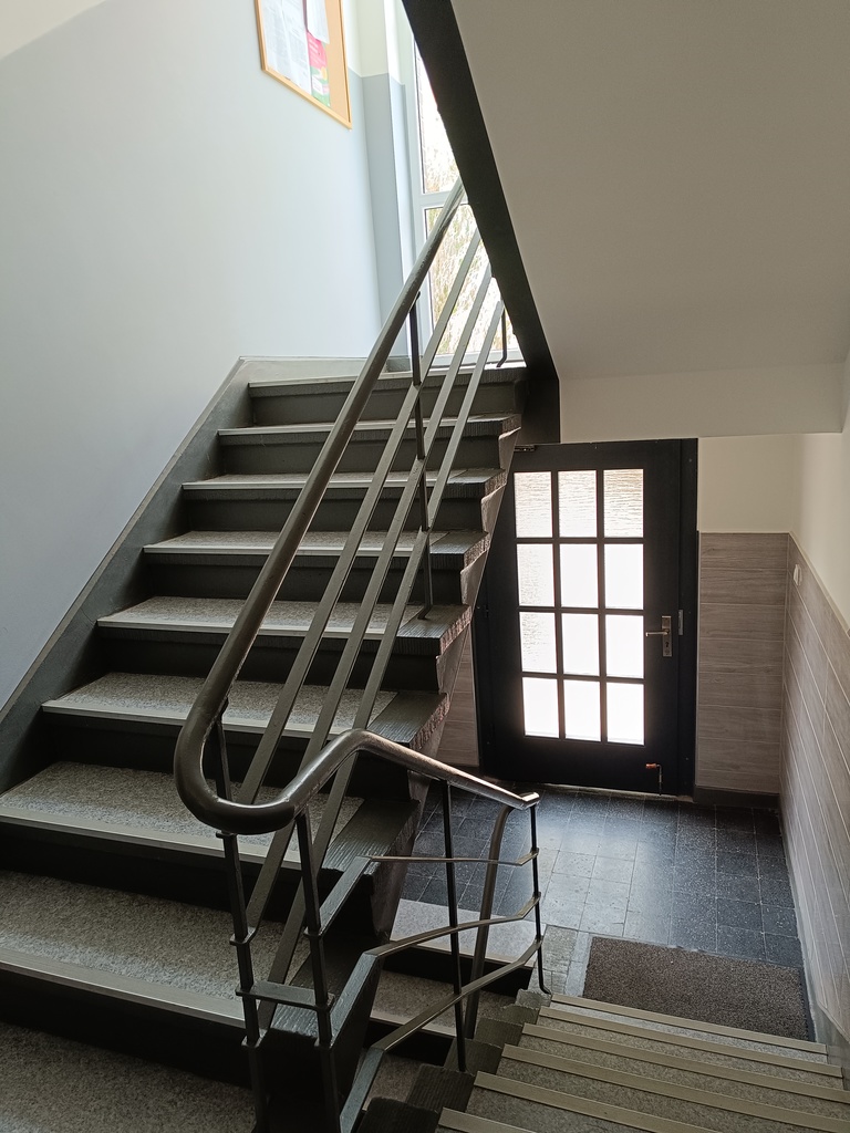 Klatka schodowa po remoncie, wymieniono piony wodno-kanalizacyjne.