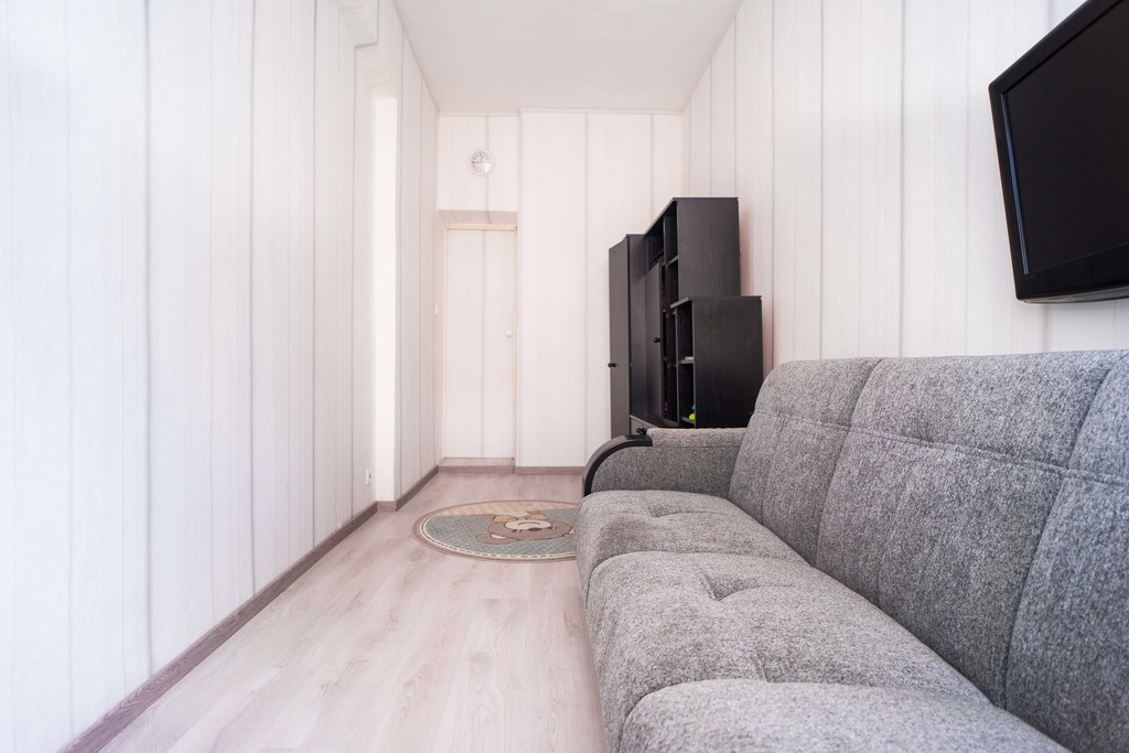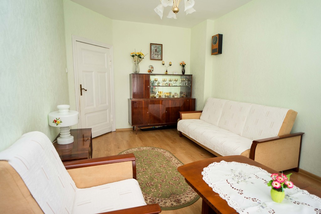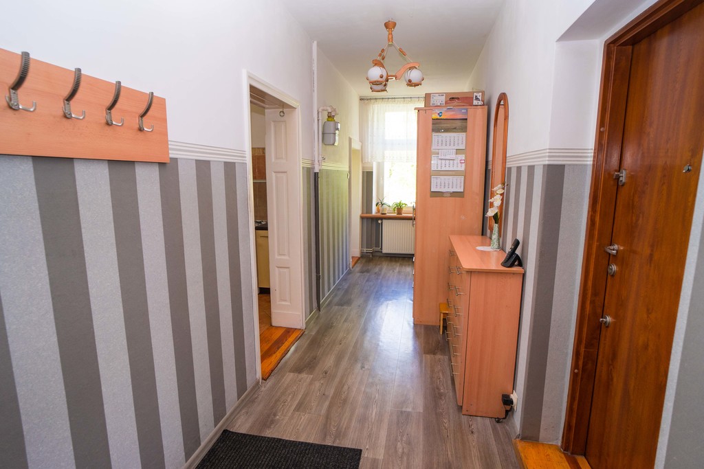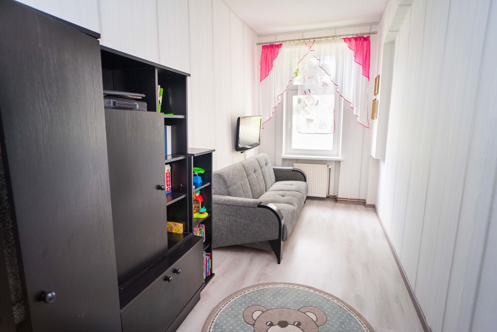 Mieszkanie jest rozkładowe, jeden z pokoi jest przechodni, na ścianach są tapety, na podłodgach położone panele, okna z PCV.