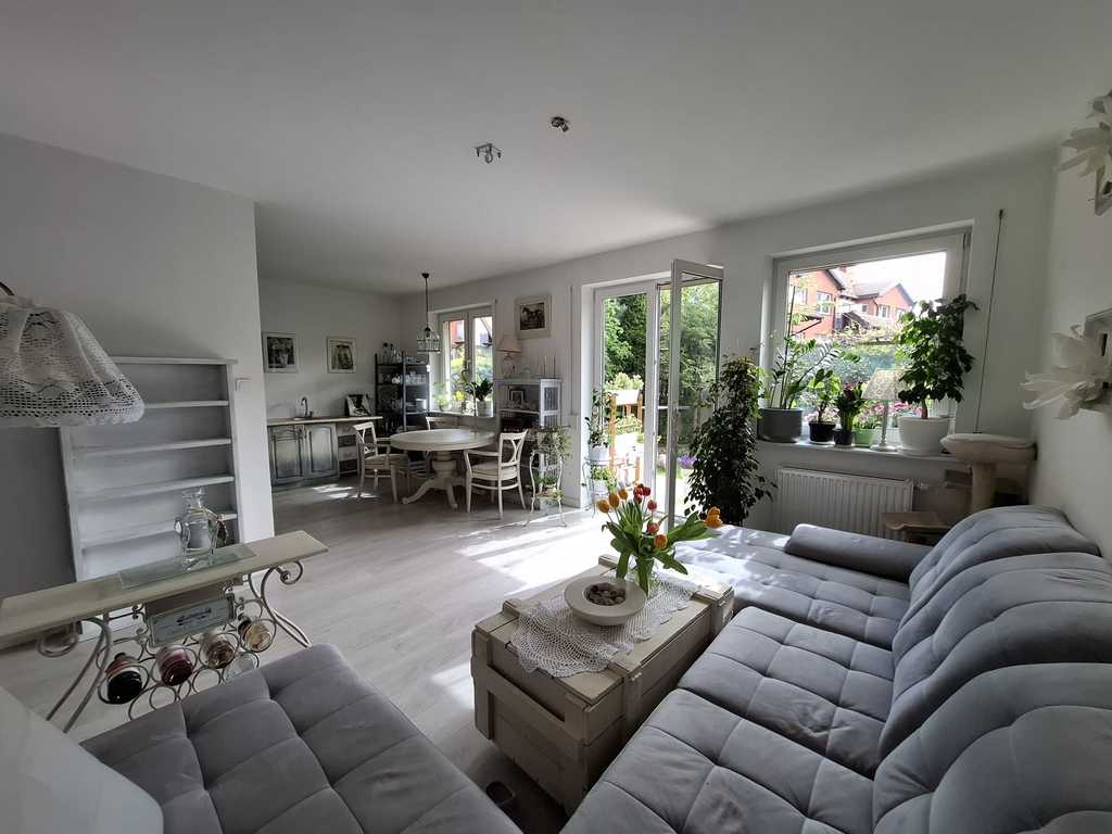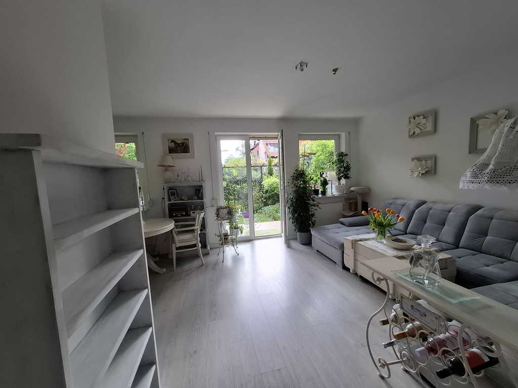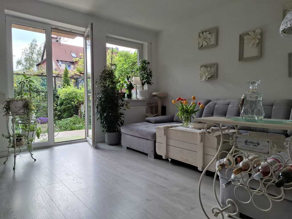 Nieruchomość składa się z dwóch rozkładowych pokoi, kuchni, łazienki, pomieszczenia gospodarczego i ogródka. Kuchnia z oknem otwarta na salon (pierwotny stan: kuchnia oddzielna). Na całej podłodze wodoodporne jasne panele hybrydowe. W sypialni nowa duża szafa/ garderoba w zabudowie na całej ścianie. Kuchnia i łazienka do własnej aranżacji. W przedpokoju wnęka na pralkę i garderoba. Ogrzewanie i ciepła woda z pieca dwuobiegowego (termostat), dodatkowo w łazience grzejnik z możliwością podgrzewania elektrycznego. Na wszyskich oknach zamontowane rolety zewnętrzne.