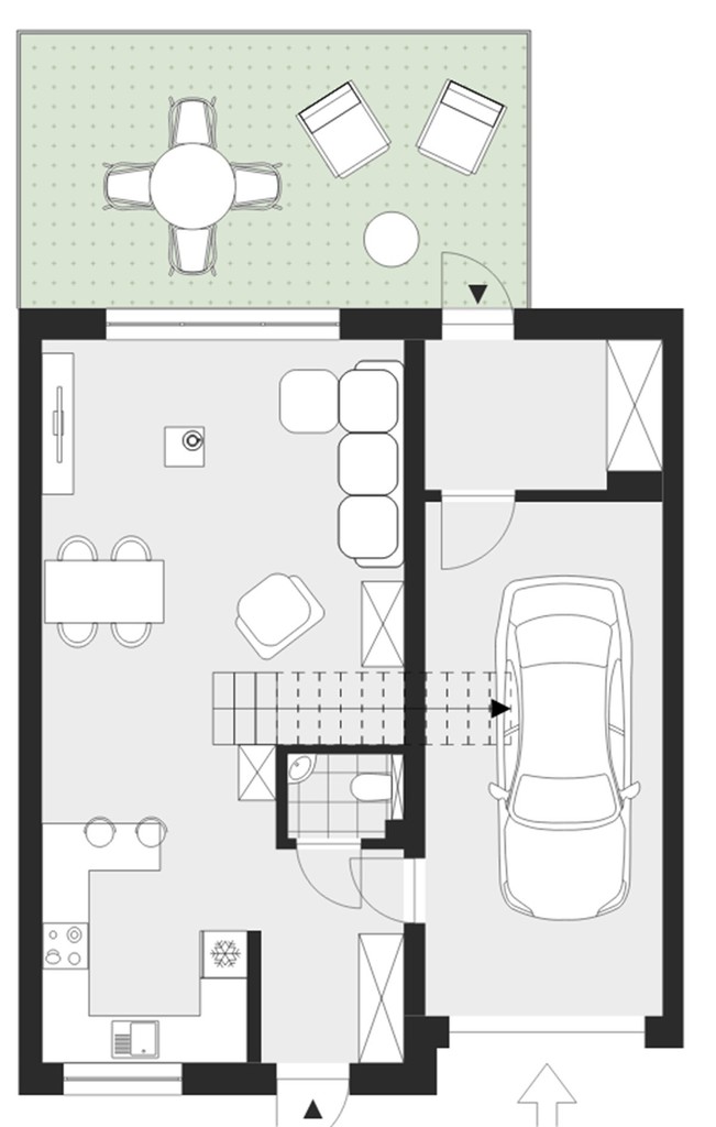- dojście do budynku i wjazd do garażu wykonane są z kostki brukowej